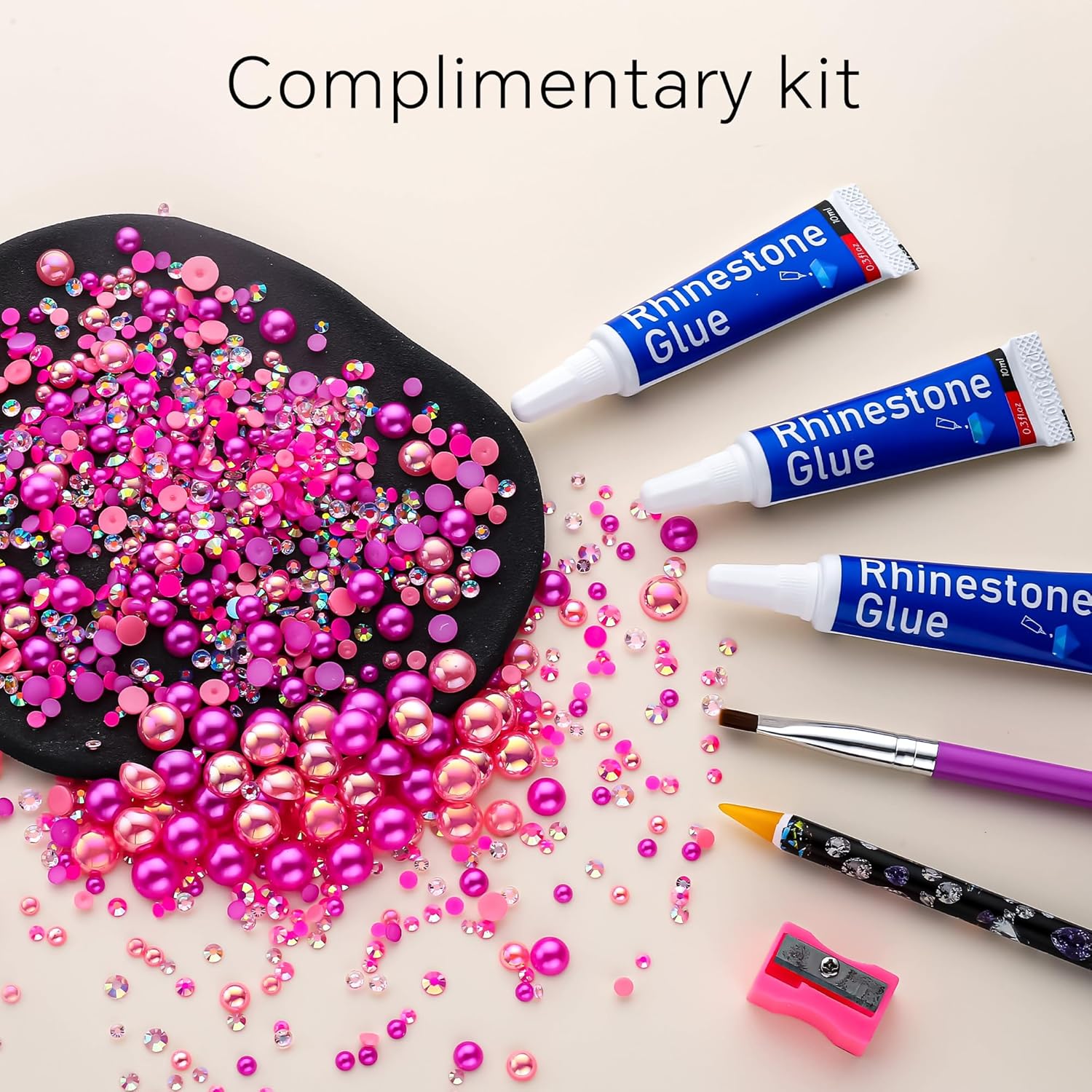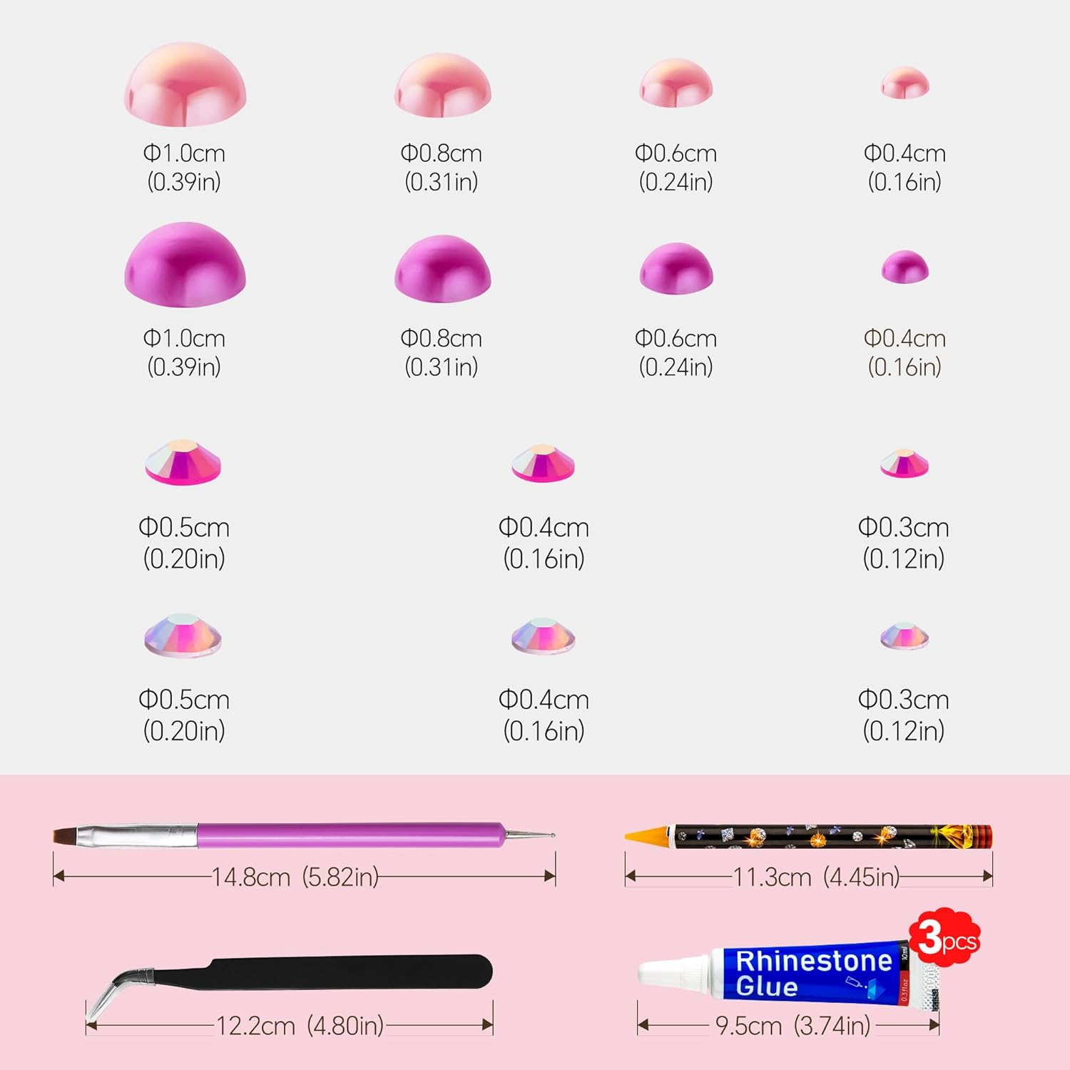 • What You Will Receive: 60g(30g*2)mixed size flat back pearls and rhinestones. 3*Rhinestone Glue. 1* wax pencil for rhinestones. 1*Pencil sharpener(color random). The mix half round pearls and rhinestones can make more beautiful handicrafts for your friends, parents, yourselfs on any festivals.If you need a mixed size pack of pearl rhinestones, search on Amazon:B0BBL2KVMD