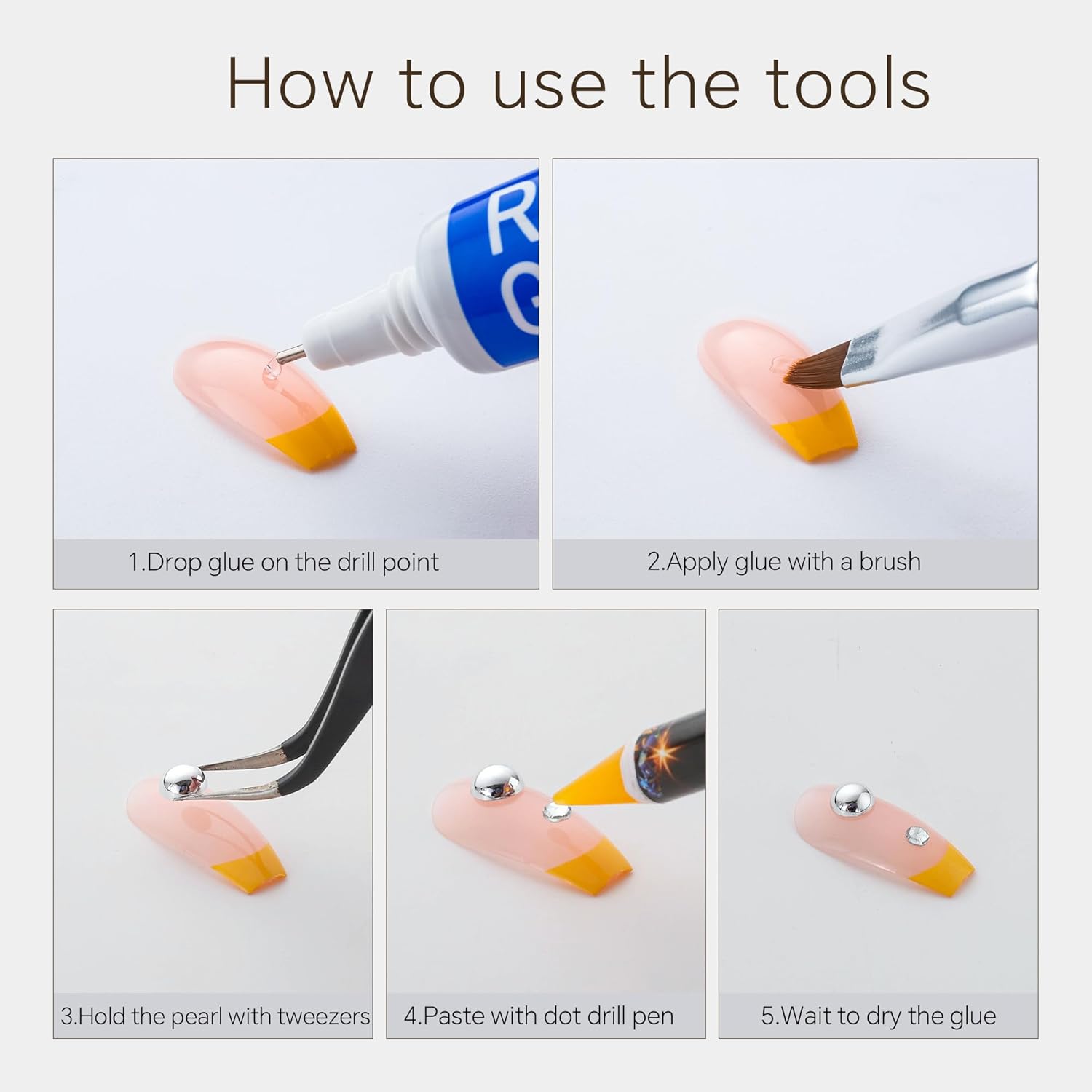 • Useful tools - These pearls and rhinestones have a flat back, which is excellent for easy placement.and you can pick up any large or small pearls and rhinestones with the crayons we bring along. And use the brush to smooth out the Gel, these tools will work very well