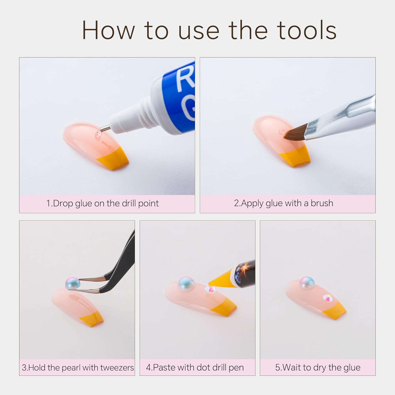 • Useful tools - These pearls and rhinestones have a flat back, which is excellent for easy placement.and you can pick up any large or small pearls and rhinestones with the crayons we bring along. And use the brush to smooth out the Gel, these tools will work very well