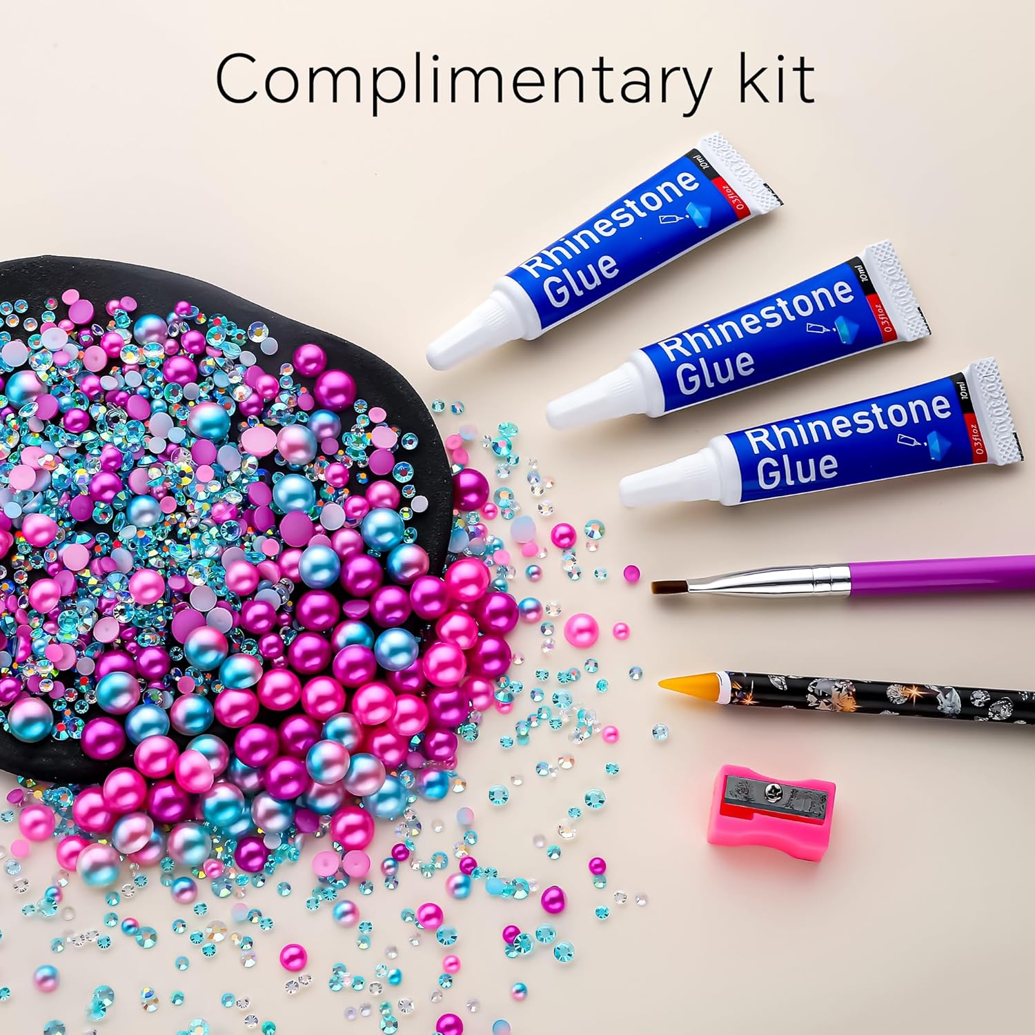 • What You Will Receive: 60g(30g*2)mixed size flat back pearls and rhinestones. 3*Rhinestone Glue. 1* wax pencil for rhinestones. 1*Pencil sharpener(color random). The mix half round pearls and rhinestones can make more beautiful handicrafts for your friends, parents, yourselfs on any festivals.If you need a mixed size pack of pearl rhinestones