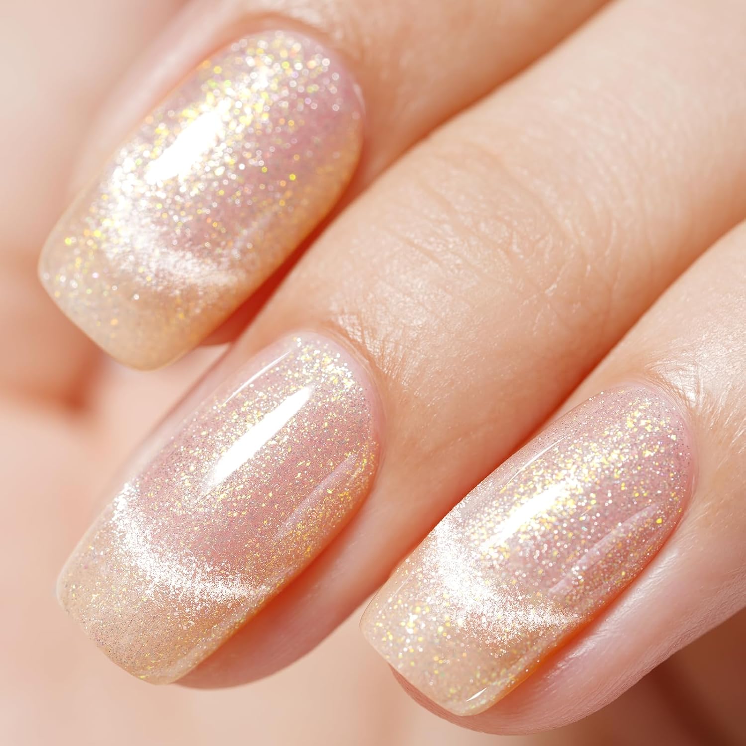 • CAT EYE STYLE - This cat eye gel nail polish is enriched with colorful gold glitter, which can be applied in 1 thin coat to create a shimmer layer of glitter that can be used either as a cat's eye effect or with other color gels.