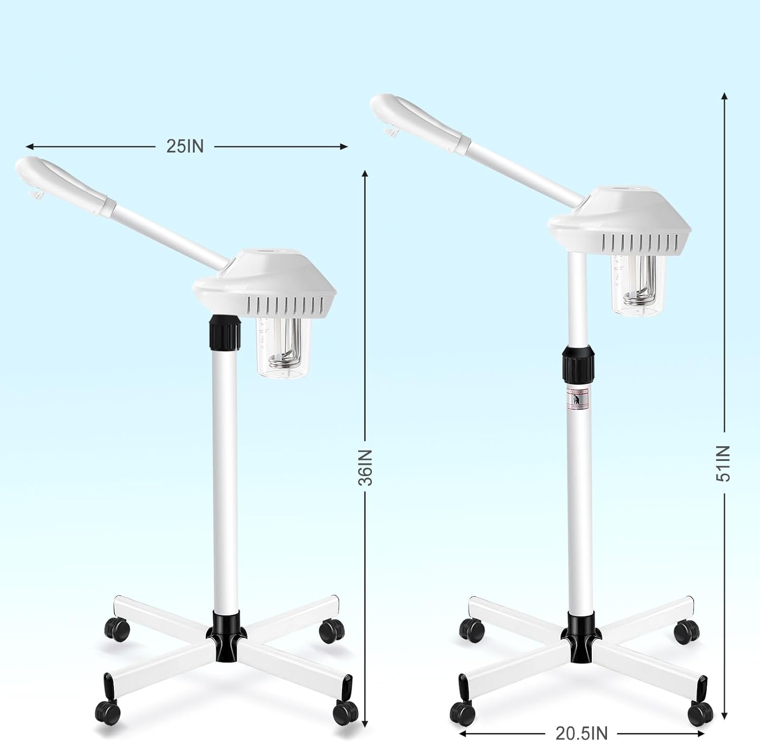 • ⭐【Adjustable Height】–The height of this professional facial steamer can be adjusted from 36 inches to 51 inches, with a 360-degree rotating main frame and a 360-degree rotating nozzle, which is very suitable for spa or home personal care.