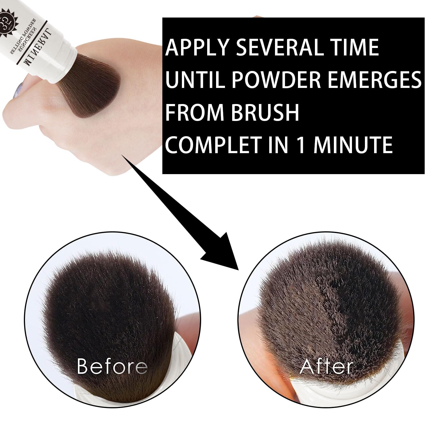 • Brush Design - The high-density quality brushes dispense a precise amount of setting powder. After applying makeup, take off the cap, slide down the brush sleeve, brush required setting powder on your face, pull up the plastic sleeve and cover the cap after finished.