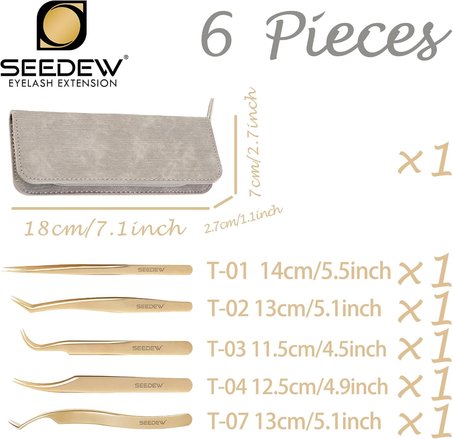 • ⭐【Premium And Classic】SEEDEW stainless steel golden tweezers have texture, smooth surface, classic and elegant style. A basic tweezer set, an unmistakable choice for eyelash artist beginners.