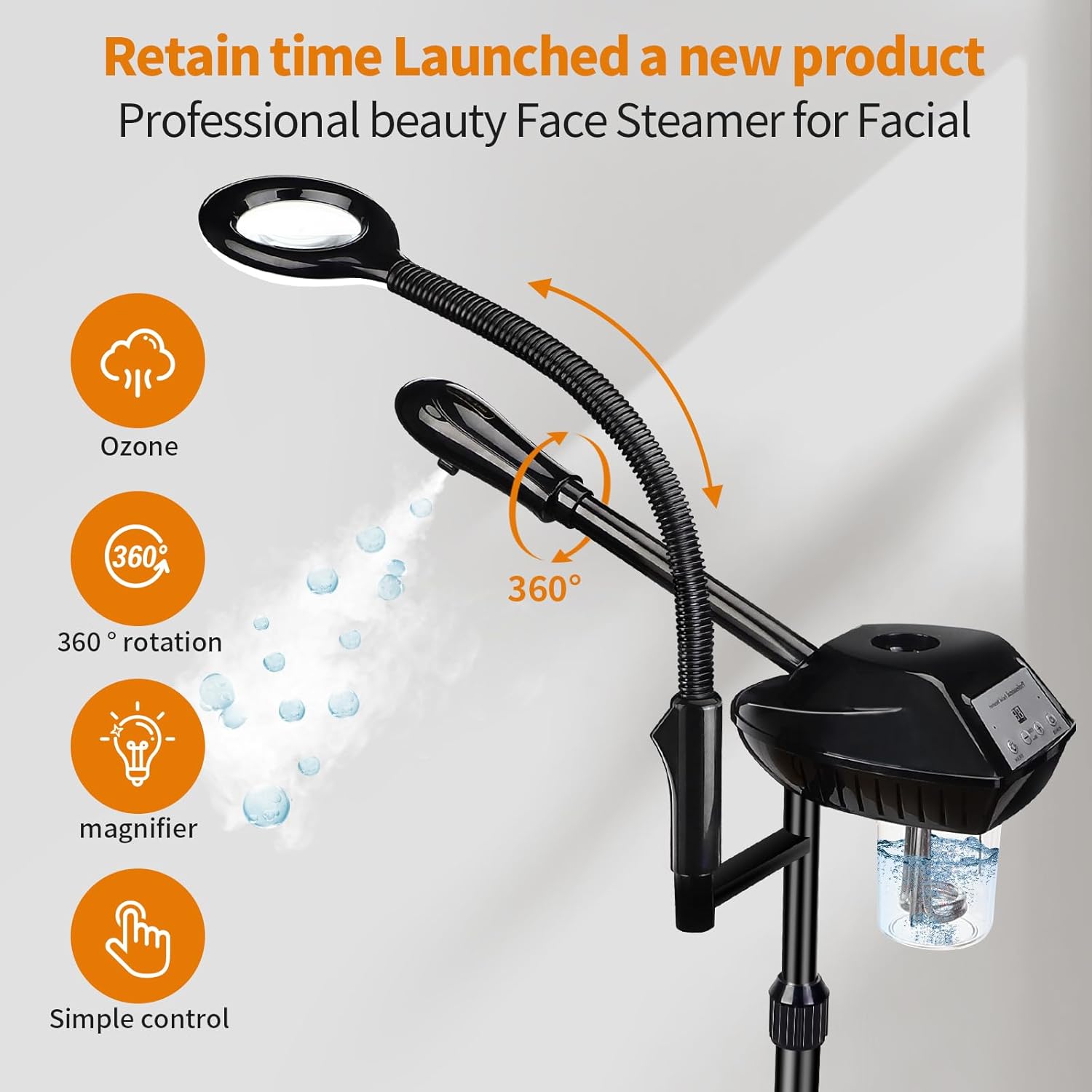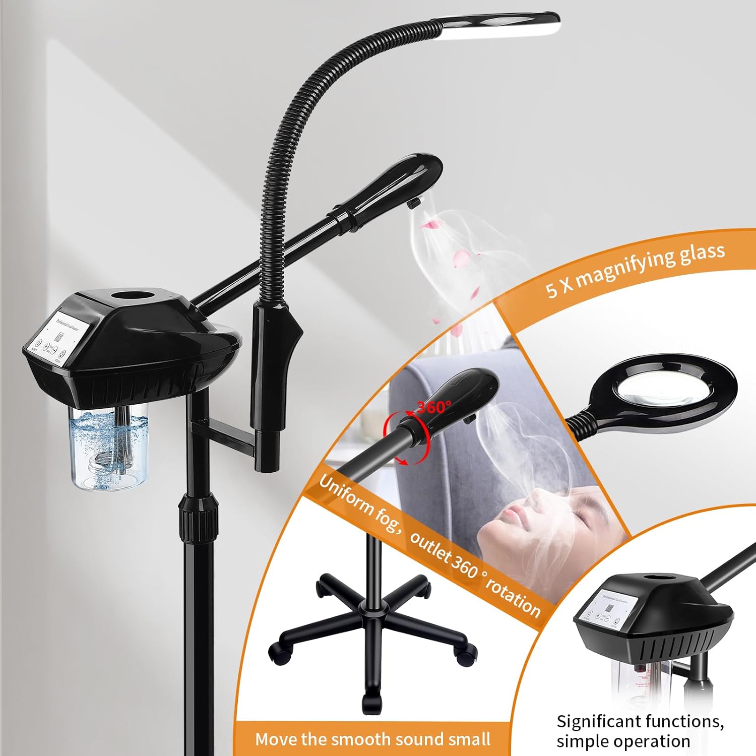 • ⭐【5 X magnifying glass】–The face steamer carries a magnifying glass looking better at the skin during the client's face or skin care,You can adjust the height and direction of the magnifying glass at will, which can play a great role in your work!