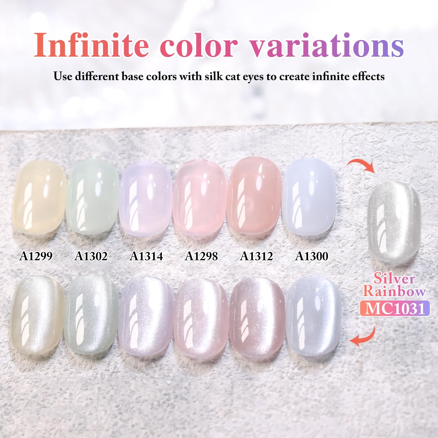 Double Rhythm 0.5 OZ Cat Eye Gel Polish with Magnet 15ML Holographic Glitter Shimmer Translucent Jelly Color Magnetic Nail Polish Salon DIY at Home (MC1031)