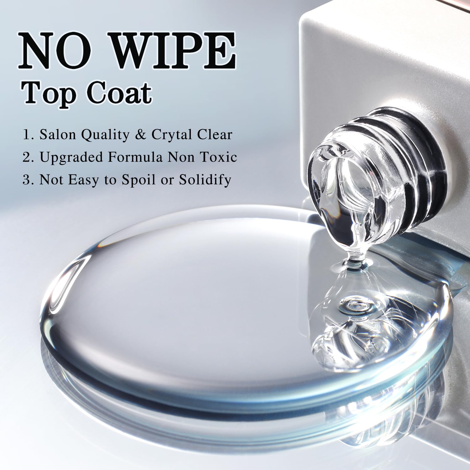 • 【Double Rhythm 2 PCS Top Coat Set】2 pcs 15ml clear top coat and no wipe top coat gel, need to be cured under UV or LED Lamp for 60-121s. Our top coat and base coat gel boasts superior adhesion properties, ensuring that your gel polish adheres firmly to the nail surface.