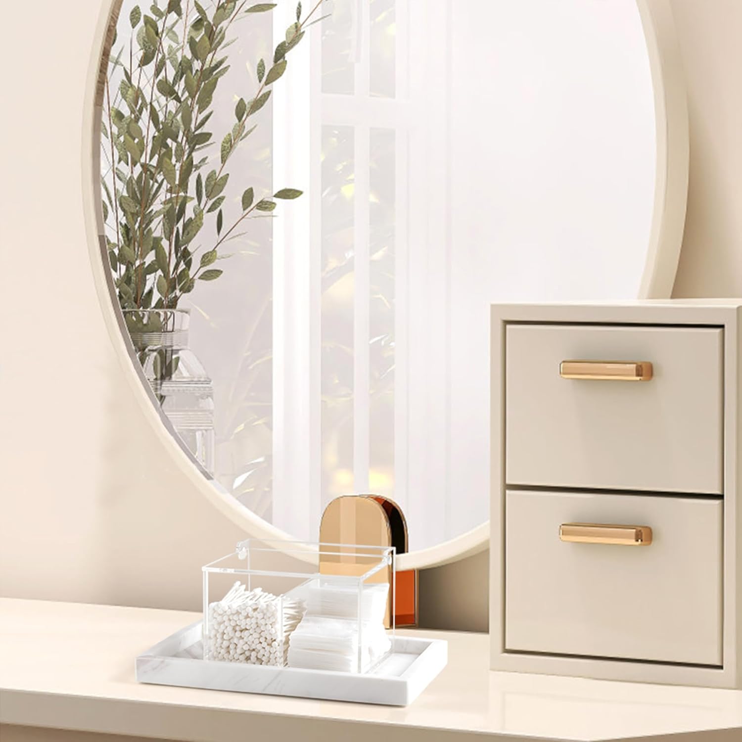 • Compact Size: Size(LxWxH)-5.9'' x 4.53" x 3.94" inches. You can also use the bathroom organizer container for organizing small items, such as beauty egg, face brush, candy, pens, clip, cotton balls, cotton swabs, cotton pads, hair ties, floss picks, bath salt and more