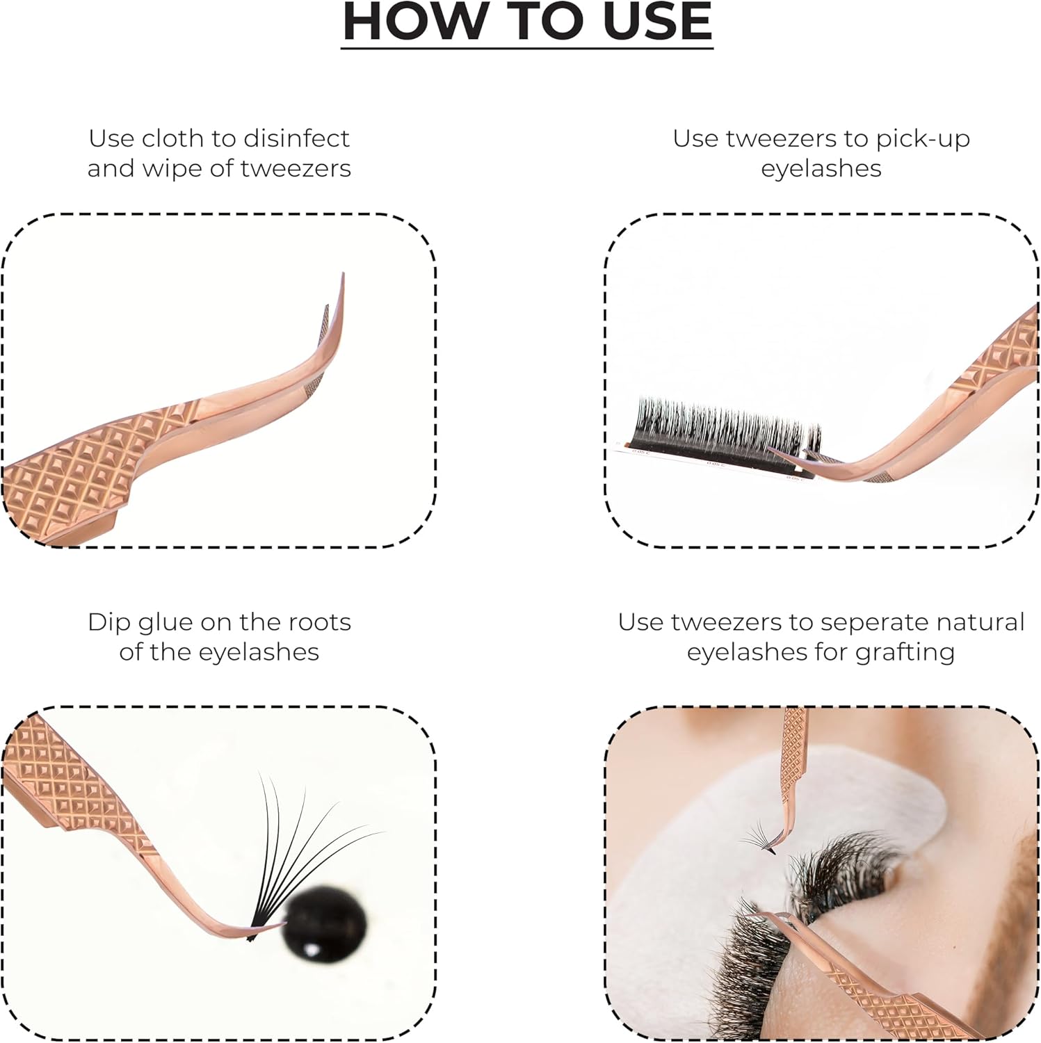 • What makes these lash tweezers set different – Our Tweezers, with tips to close completely, can pick up tiniest lashes with an ample sweet spot, and a savior of your lashing whims