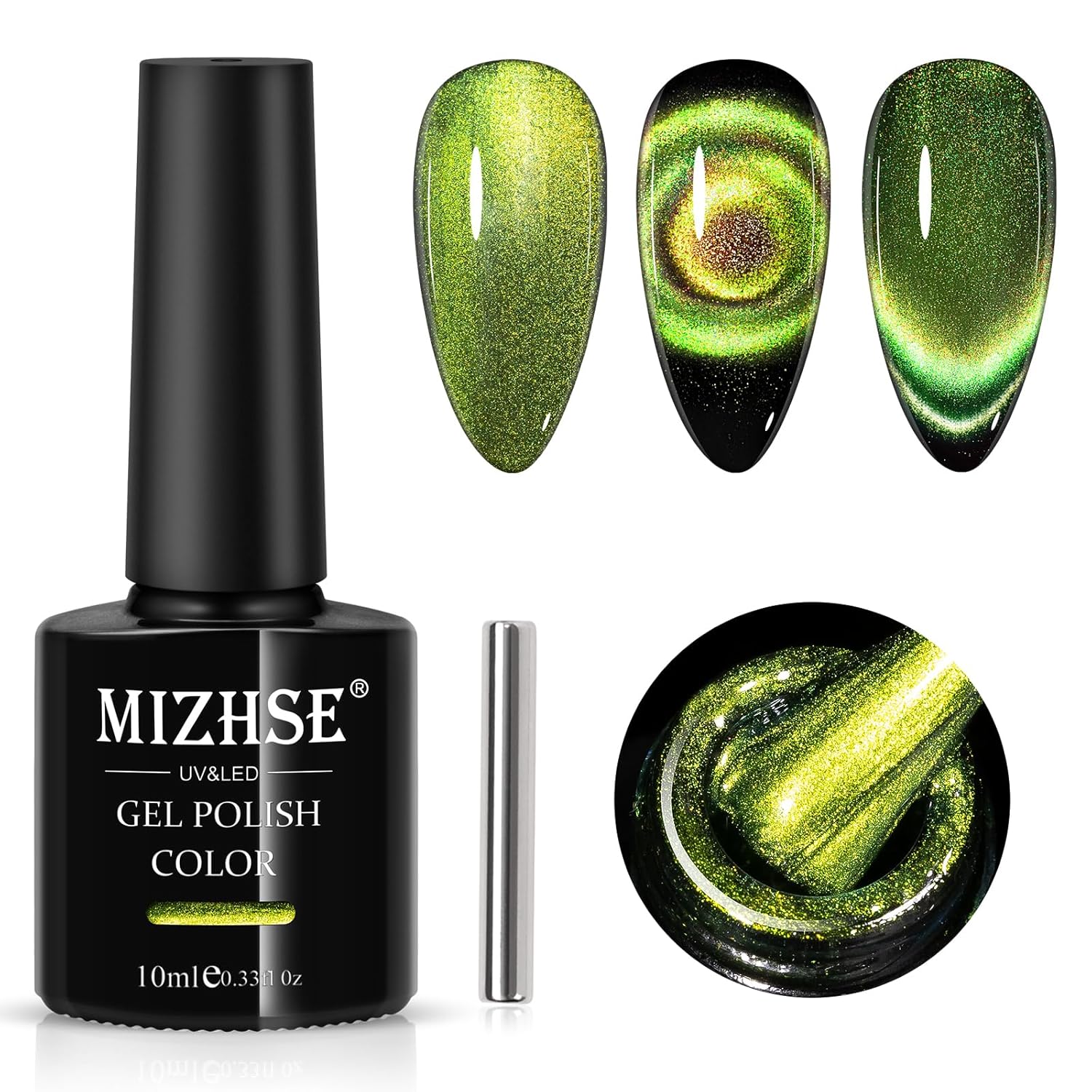 • MIZHSE 9D Cat Eye Gel Nail Polish: 1 color magnetic gel polish, 1 magnet stick, without black base. Save your money and time to nail salon! Enjoy the DIY fun of nail beauty at home. Suitable for natural nails, false nails, acrylic nails, etc.