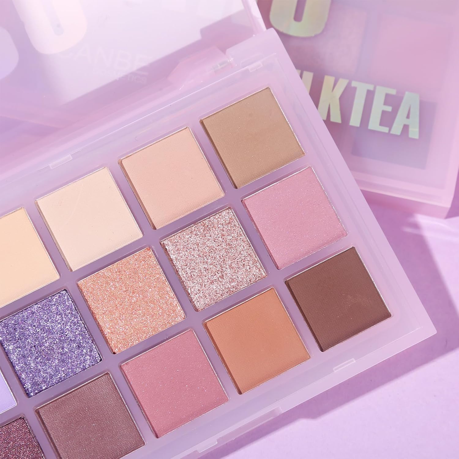 • ❤. This eye palette is inspired by taro milk tea, mixture of 15 stunning warm and cool toned shades that velvety & go on smoothly texture with matte shimmery finishes to create next level looks to unleash your artistry. Each high pigmented, easy to blend, buildable, and long-lasting, created to suit every skin tone and eye color.