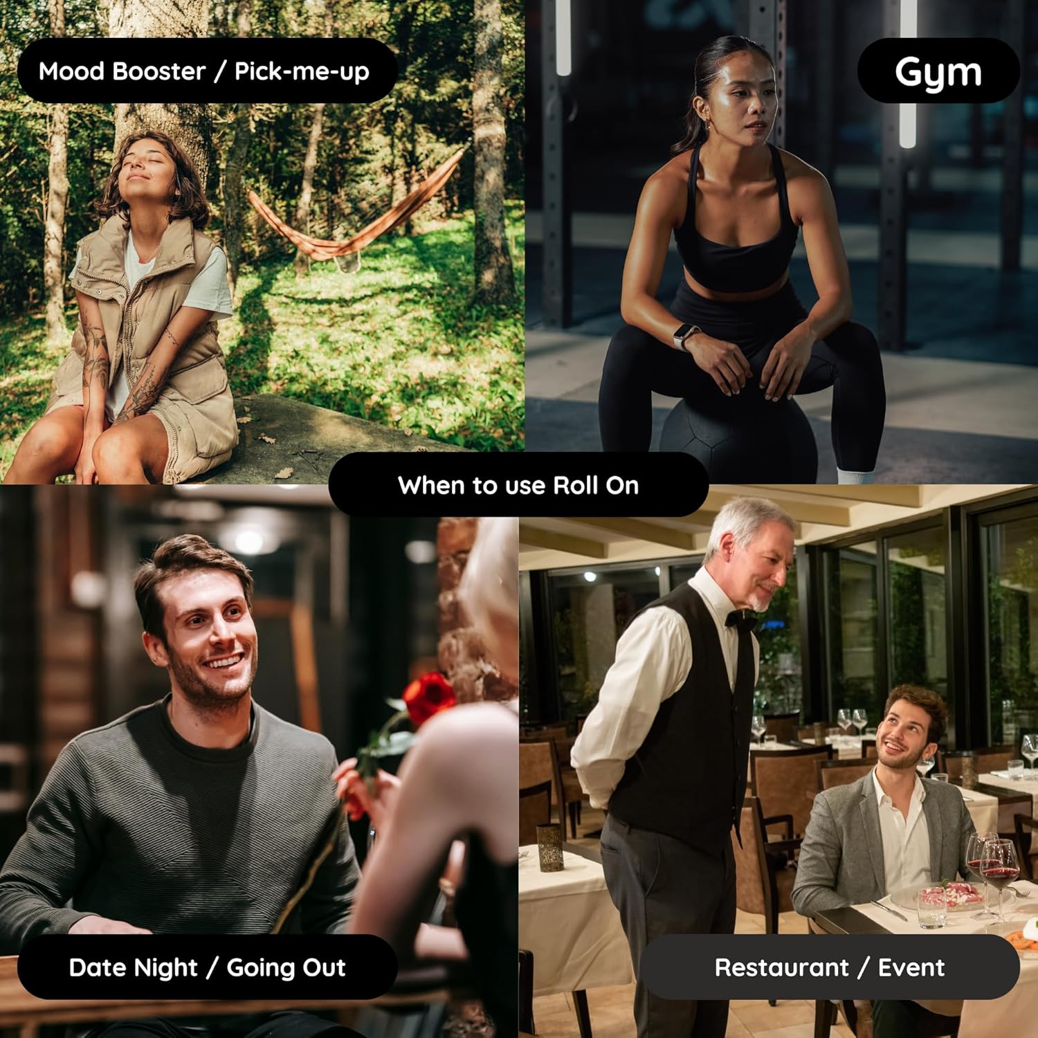 • ON-THE-GO CONVENIENCE - Our roll-ons are thoughtfully crafted with a travel-friendly size, making them perfect companions for your daily adventures. Slip one into your bag or pocket and effortlessly elevate your mood anytime, anywhere. The sleek and compact design ensures mess-free application, while the rollerball glides smoothly over your skin, delivering the perfect amount of scent with each stroke.