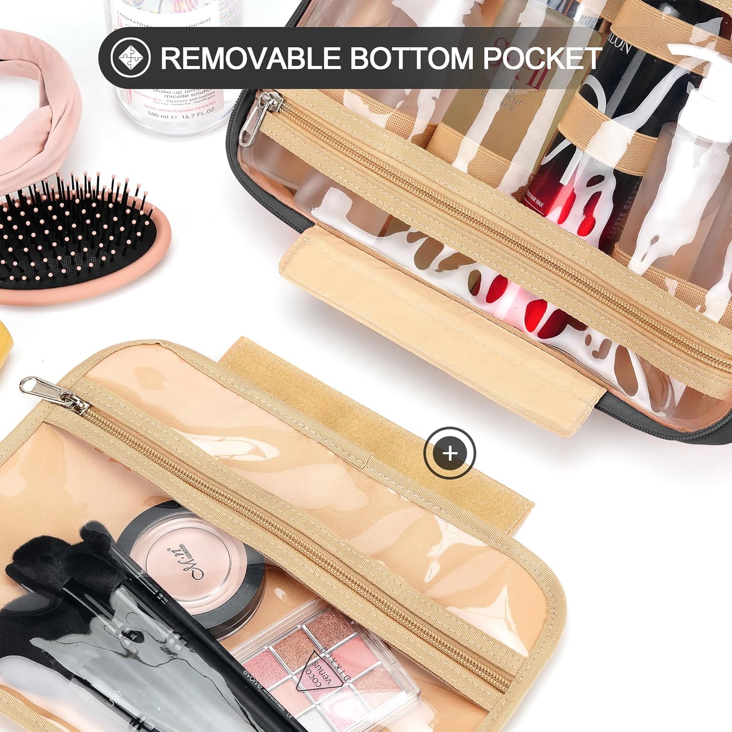 • EASY TO USE - When it is open and hanging, all the transparent pockets inside will be lined up in front of you, you can quickly take out the items you need without making a mess inside. The bottom bag is detachable, you can remove it if it’s too long for you and use it as a separate bag. The trolley strap on the back can fix on the trolley case, you also can put it in the suitcase to free your hands.