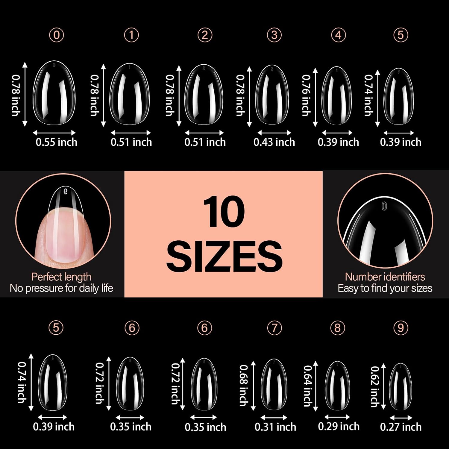 • Multiple Sizes Option: Our preshaped nail tips include different sizes with each size 42pcs, totally 504pcs, providing you with more options to choose. For the extra sizes, they can be easily trimmed and shaped to suit your preferences, giving you the freedom to express your creativity, avoiding waste. Regarding the dispute about the length of full nail tips, everyone’s nail bed length is different. It is recommended to refer to the size chart when purchasing.