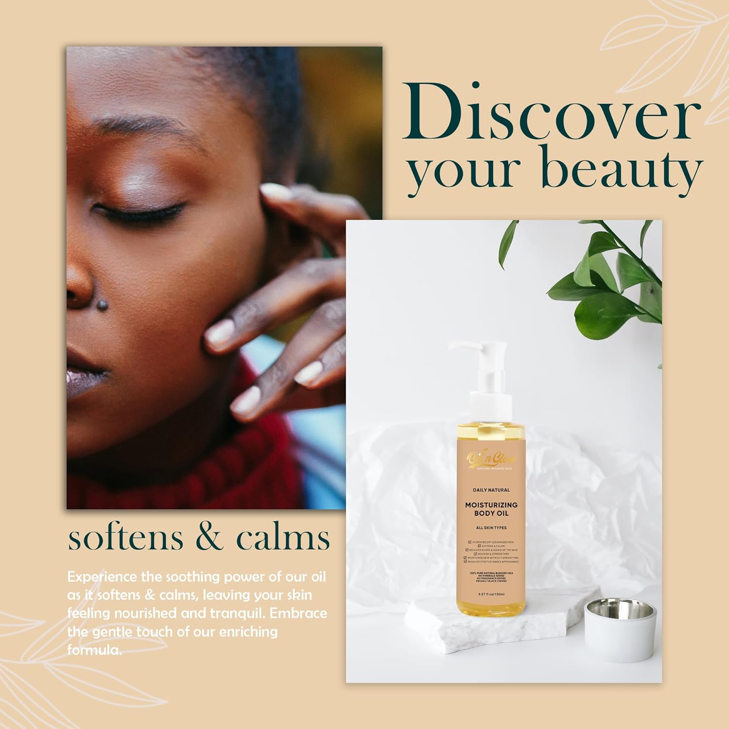 • DEEPLY HYDRATE AND MOISTURIZE: Quench your skin’s thirst with our hydrating body oil enriched with vitamin E oil, coconut oil, jojoba oil, olive oil, and almond oil. Designed to deeply nourish, this moisturizing body oil penetrates dry layers, reviving damaged skin while restoring its soft, supple glow. Perfect as a body oil after shower, it renews your skin without any greasy residue. Embrace the natural luxury of smooth, vibrant skin with our pure moisturizing oil for body.