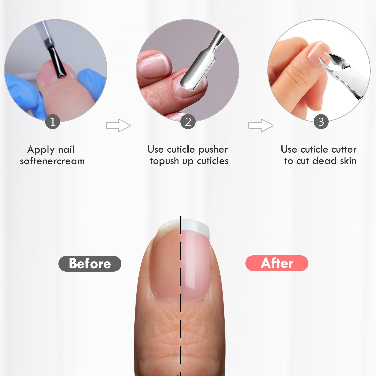 • Upgraded Polished Stainless Steel Materal -- The cuticle trimmer and cuticle pusher cutter are made of polished stainless steel, Which makes them sharper, more efficient and durable, easy to clean. They will give you a nice experience for a long time.