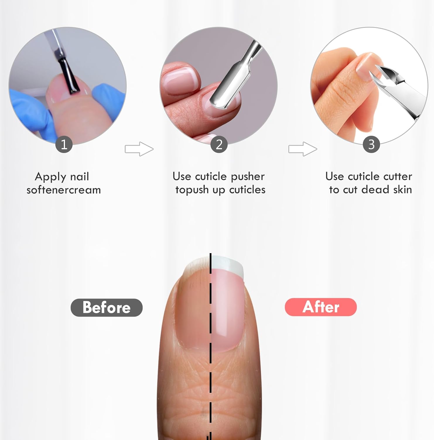 • Upgraded Polished Stainless Steel Materal -- The cuticle trimmer and cuticle pusher cutter are made of polished stainless steel, Which makes them sharper, more efficient and durable, easy to clean. They will give you a nice experience for a long time.