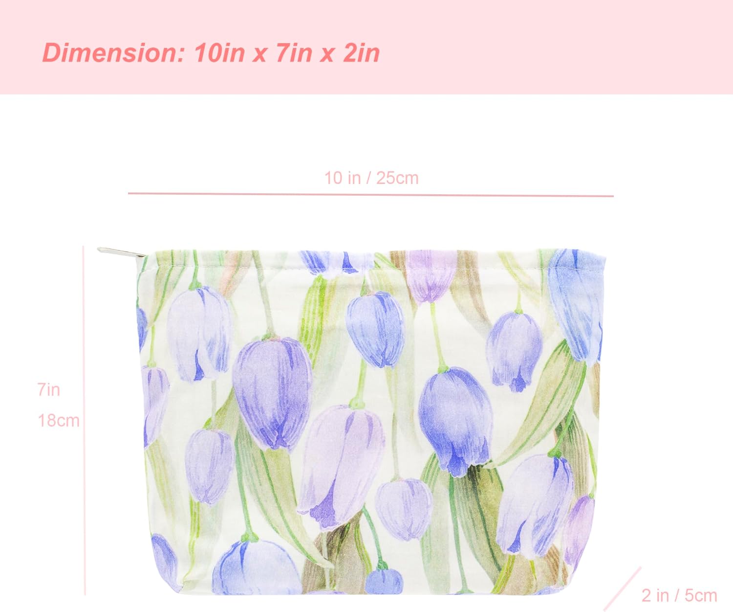 PAZIMIIK Floral Makeup Bag Large Cotton Zipper Pouch for Purse Travel Canvas Make Up Organizer for Women Cosmetic,Tulip Purple