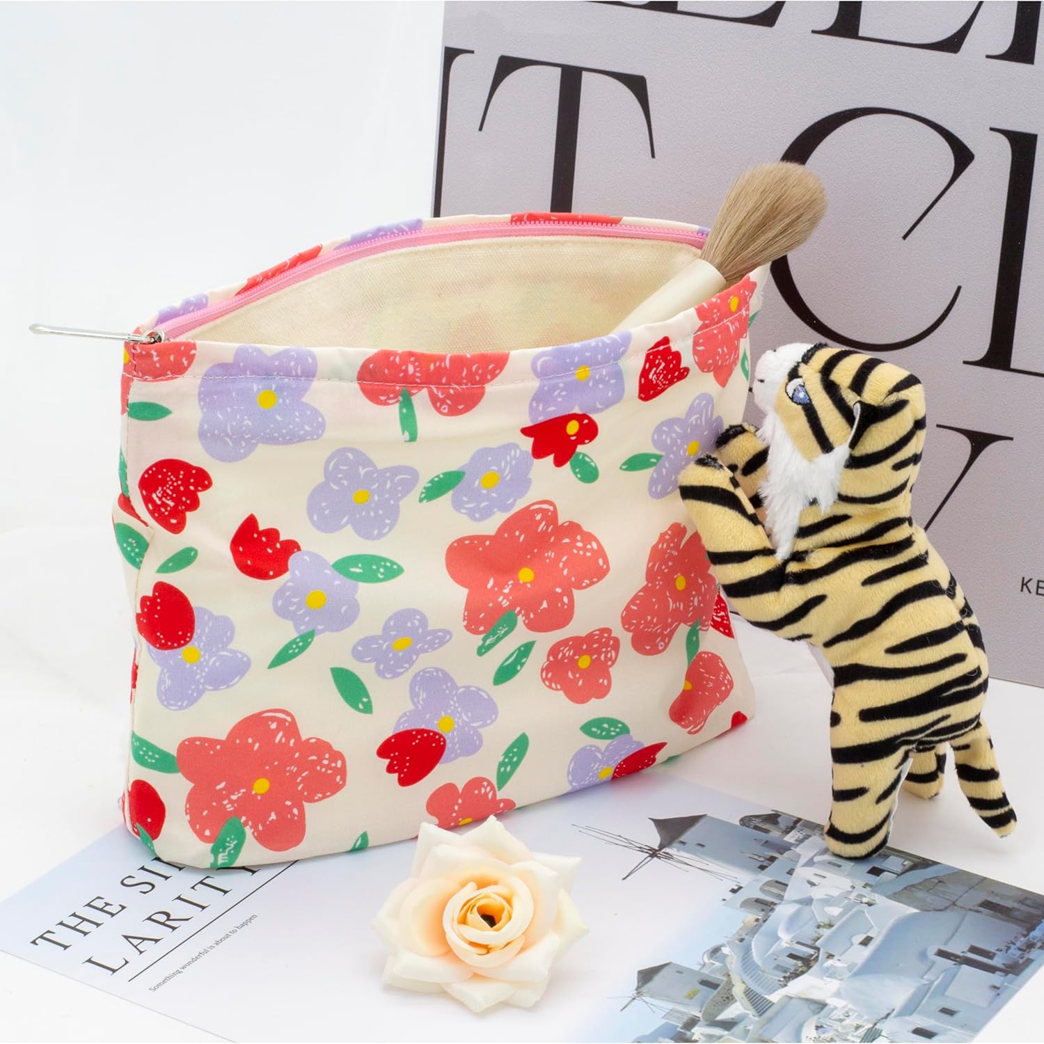 • Multi-Purpose:Use this sturdy pouch to easily pack and carry makeup,jewelry,beauty items,brushes,pencils,small electronic accessories,toiletries,essential oils,medcine,tools or other travel essentials.This cosmetic pouch is the perfect balance between funchtion and style.