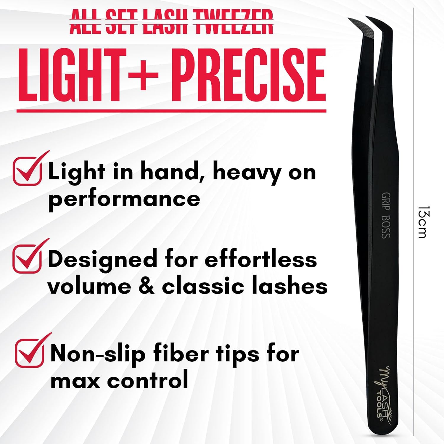 • GRIP BOSS Pro Tool: The GRIP BOSS tweezer by My Lash Tools is perfect for lash artists who demand maximum control and effortless volume fan creation.