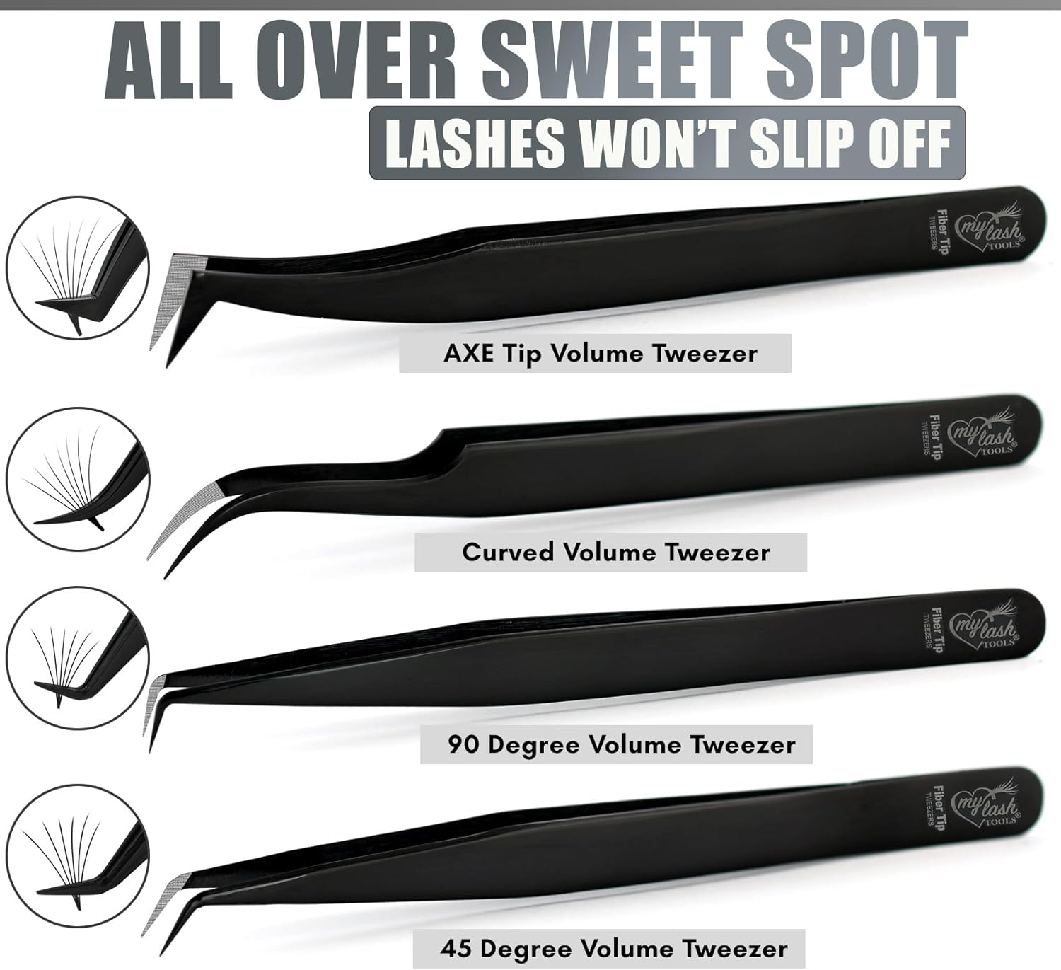 • COMFORTABLE TO USE - Perfect for all lash artists—beginners to pros. Lightweight, durable, and precise. Ideal for volume lashes, with a complete grip and all over sweet spot. Fiber tip tweezers are easy to carry packed in case. Your ultimate lash tech must-haves! Prefect for isolation & mega volume.