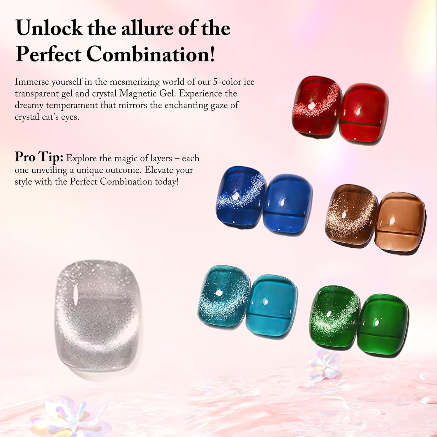 • Complete Kit: Each set includes a 15ml bottle of cat eye gel polish and a magnet stick, allowing you to create various mesmerizing effects.