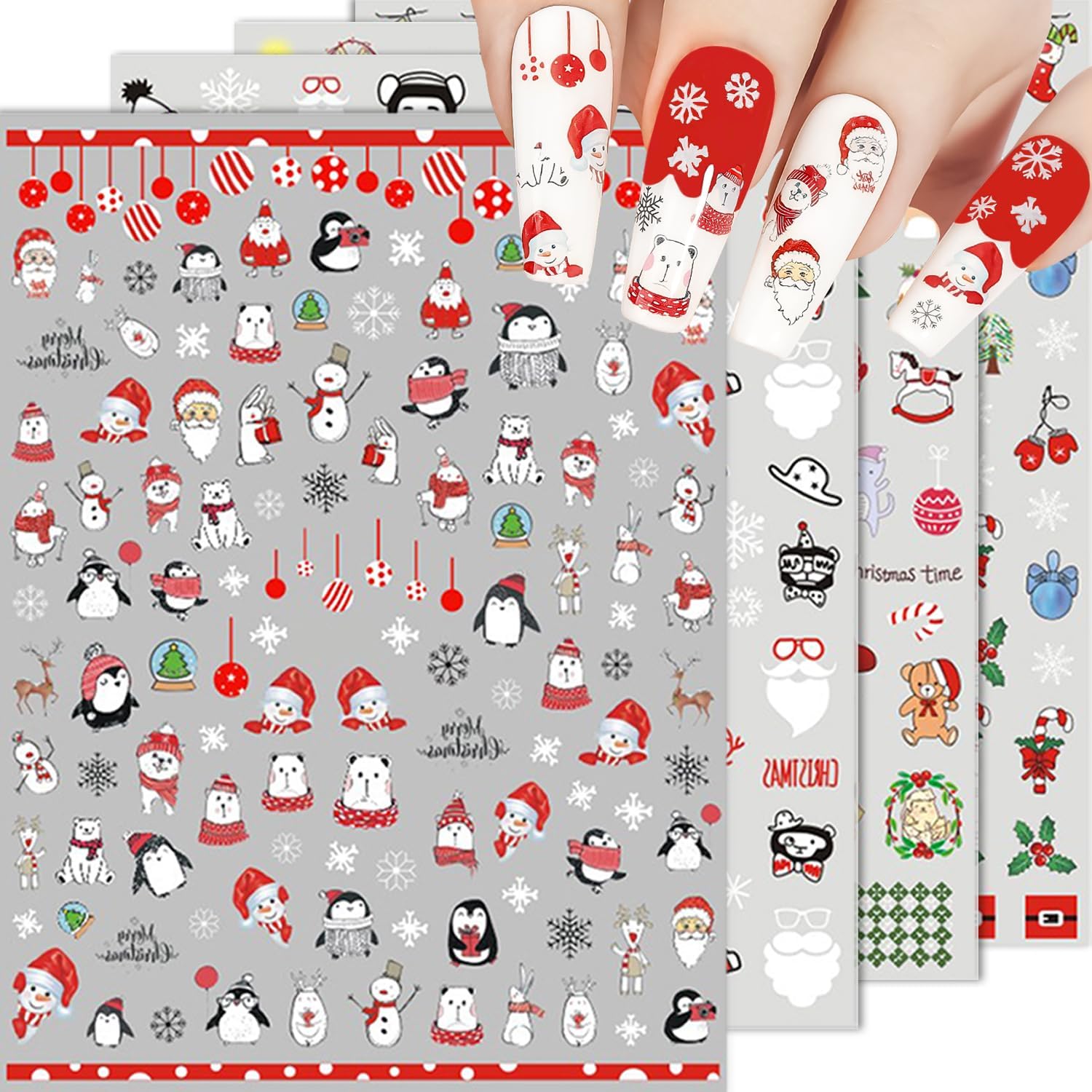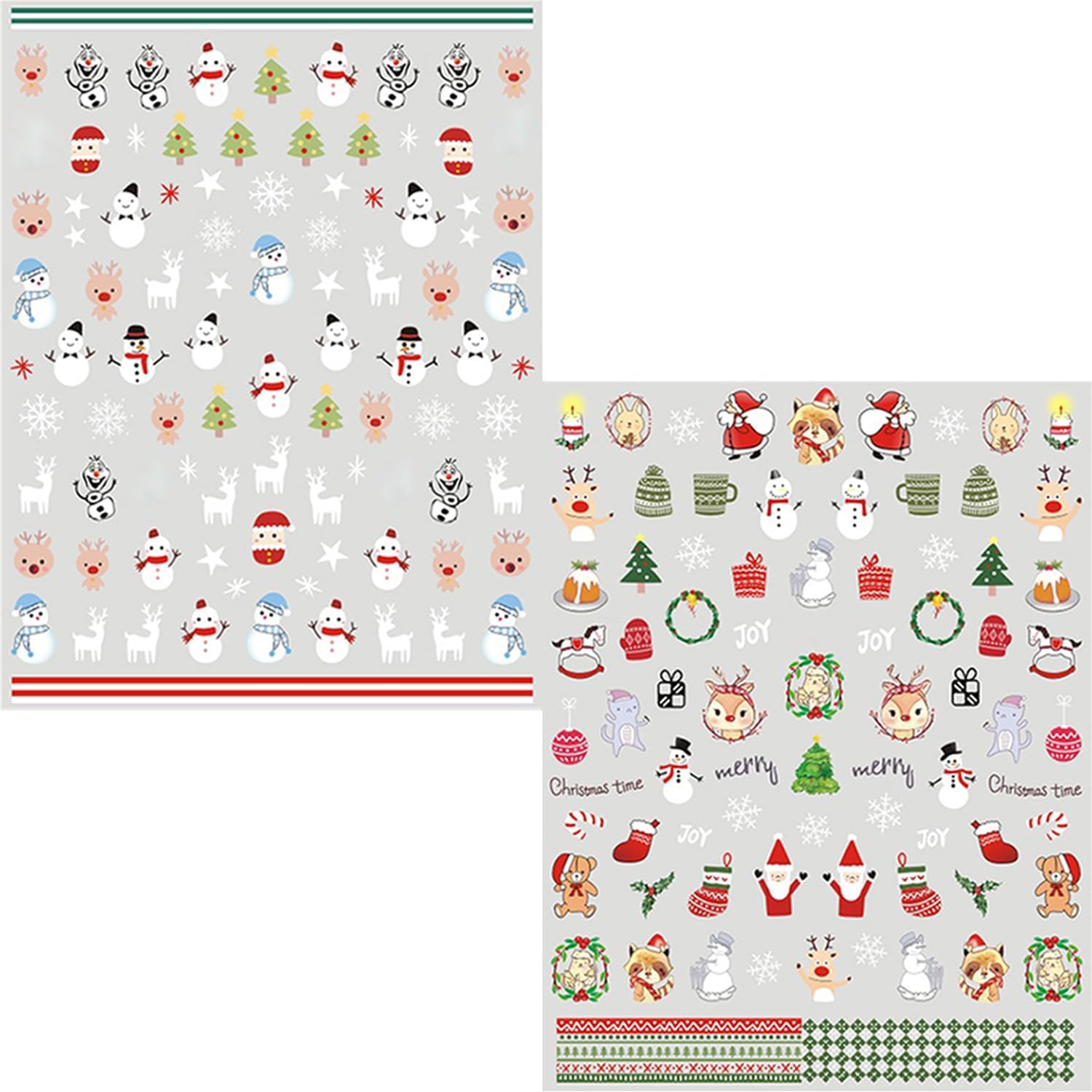 HNUIX Nail Stickers - 3D Christmas, Self Adhesive Nail Decals, Multi Colour Pattern, 10 Sheets, for Nail Art