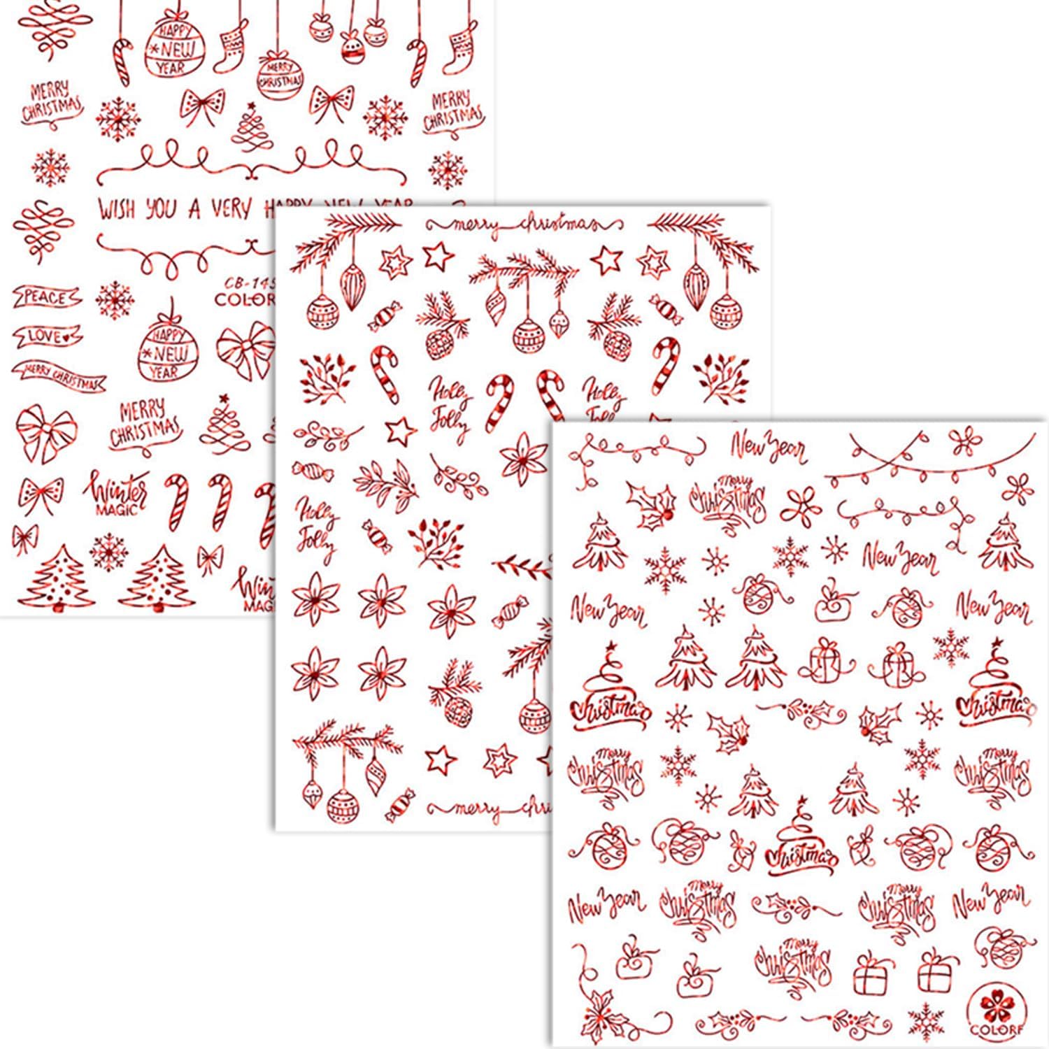 HNUIX Nail Stickers - 3D Christmas, Self Adhesive Nail Decals, Multi Pattern, Red, 9 Sheets, for Nail Art