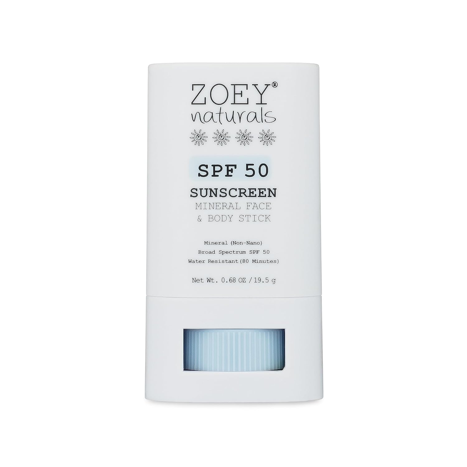Zoey Naturals SPF 50 Mineral Sunscreen Stick for Babies & Kids - Safe Sunblock Moisturizer for Body & Face - with Rose Hips Oil, Zinc Oxide, Cruelty Free and Reef Safe, Made in USA