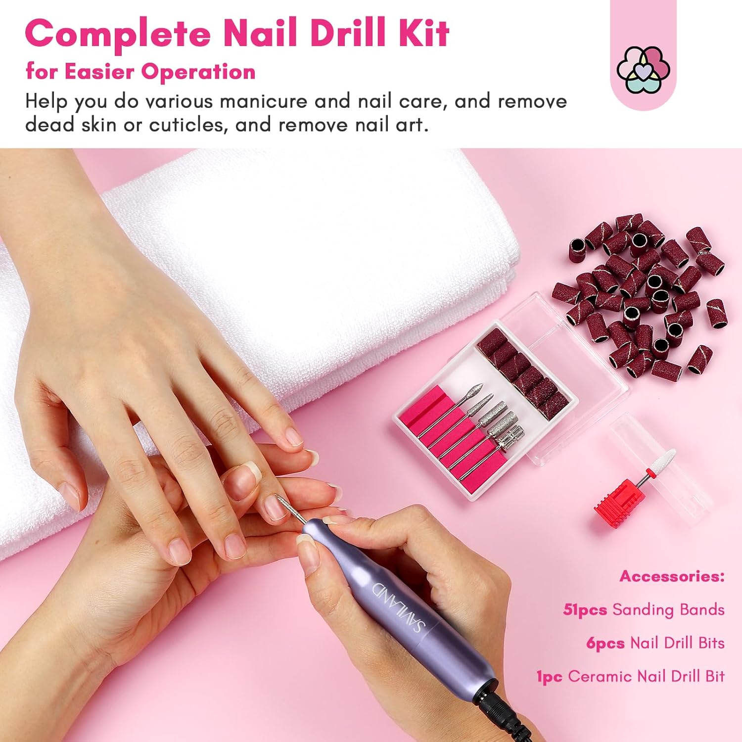 • Nail Drill for A Quick French Manicure: SAVILAND dip nail powder kit starter set contains 6 pcs nail drill bits, 6+45 pcs sanding bands. The nail drill for dips nail professional in this dip powder nail kit can rotate up to 20,000 RPM, Adjustable steering and rotational speed for safe and easy use. Ideal for quick sanding, carving, cutting, polishing, nail removal, dead skin and cuticle removal