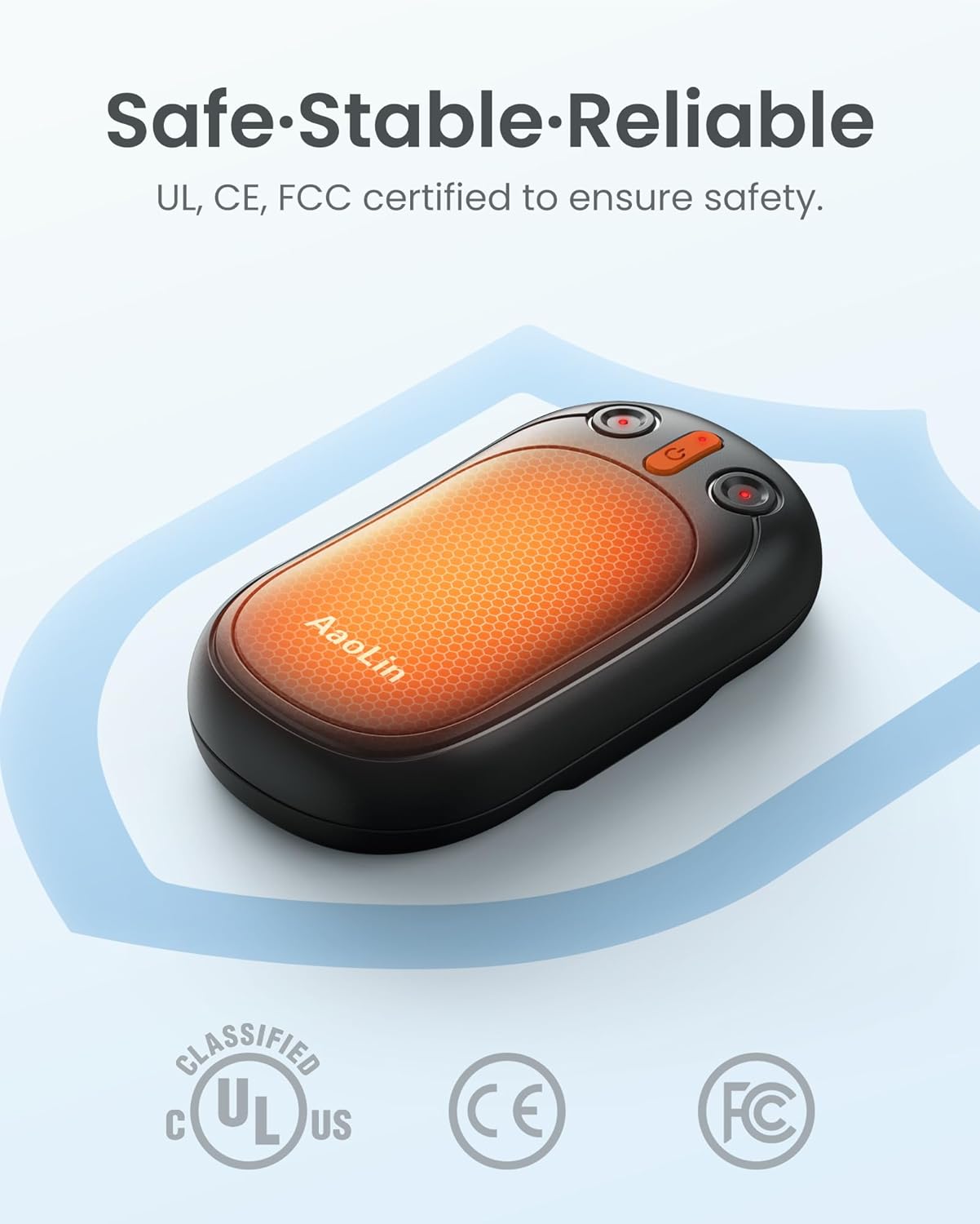 AI Hand Warmers Rechargeable, AaoLin 2 Pack Electric Hand Warmers Reusable, 12Hrs Long Heating, Portable Pocket Handwarmer Great Gift for Outdoors, Camping, Golf, Hunting Gear