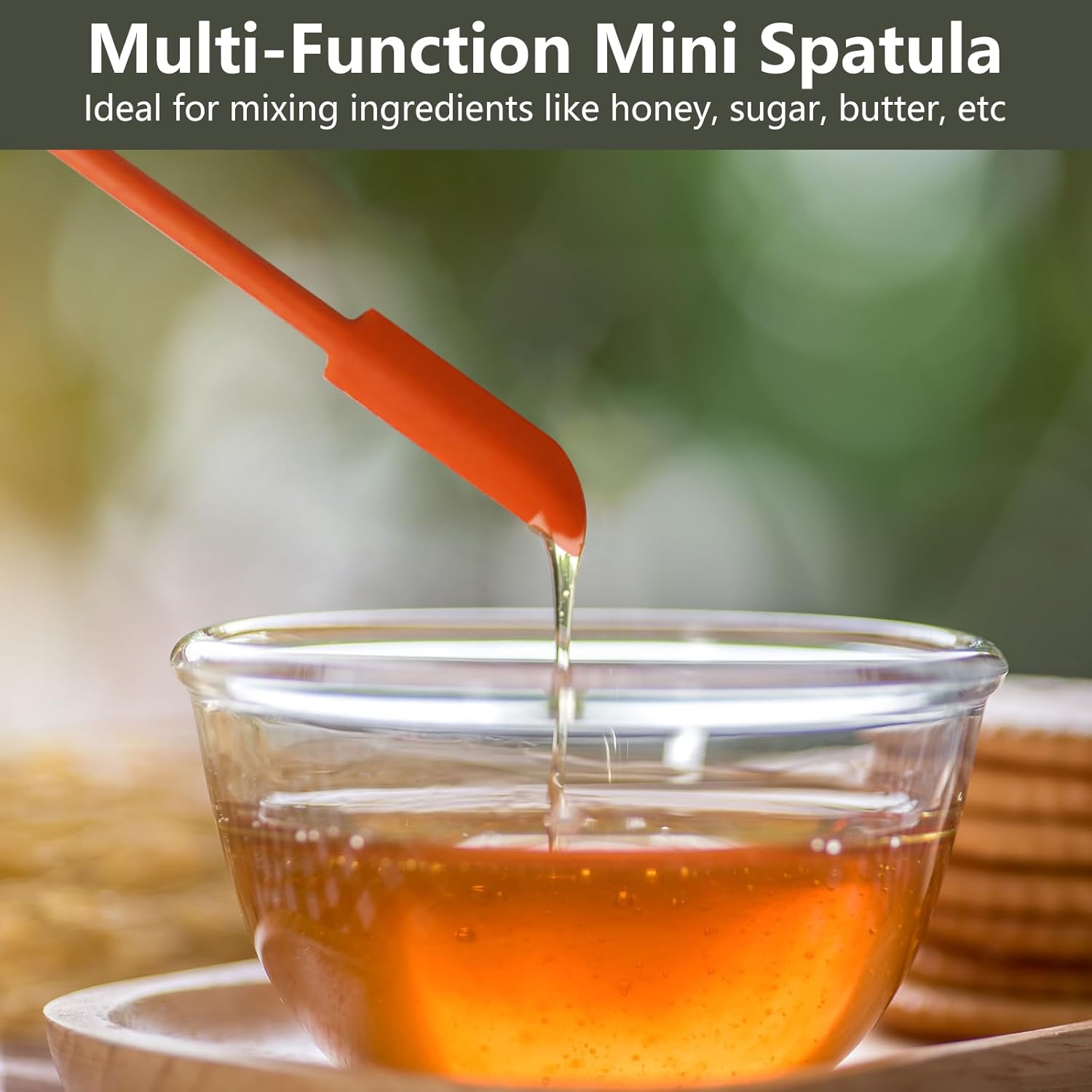 • √ Don't Let a Single Drop Go to Waste-Mini silicone spatulas are ideal for accessing hard-to-reach areas due to their long bodies and narrow heads, as well as their range of sizes and lengths. This makes them perfect for reaching into jars and other containers with small openings.