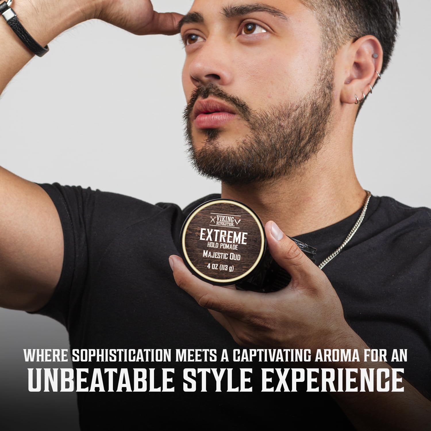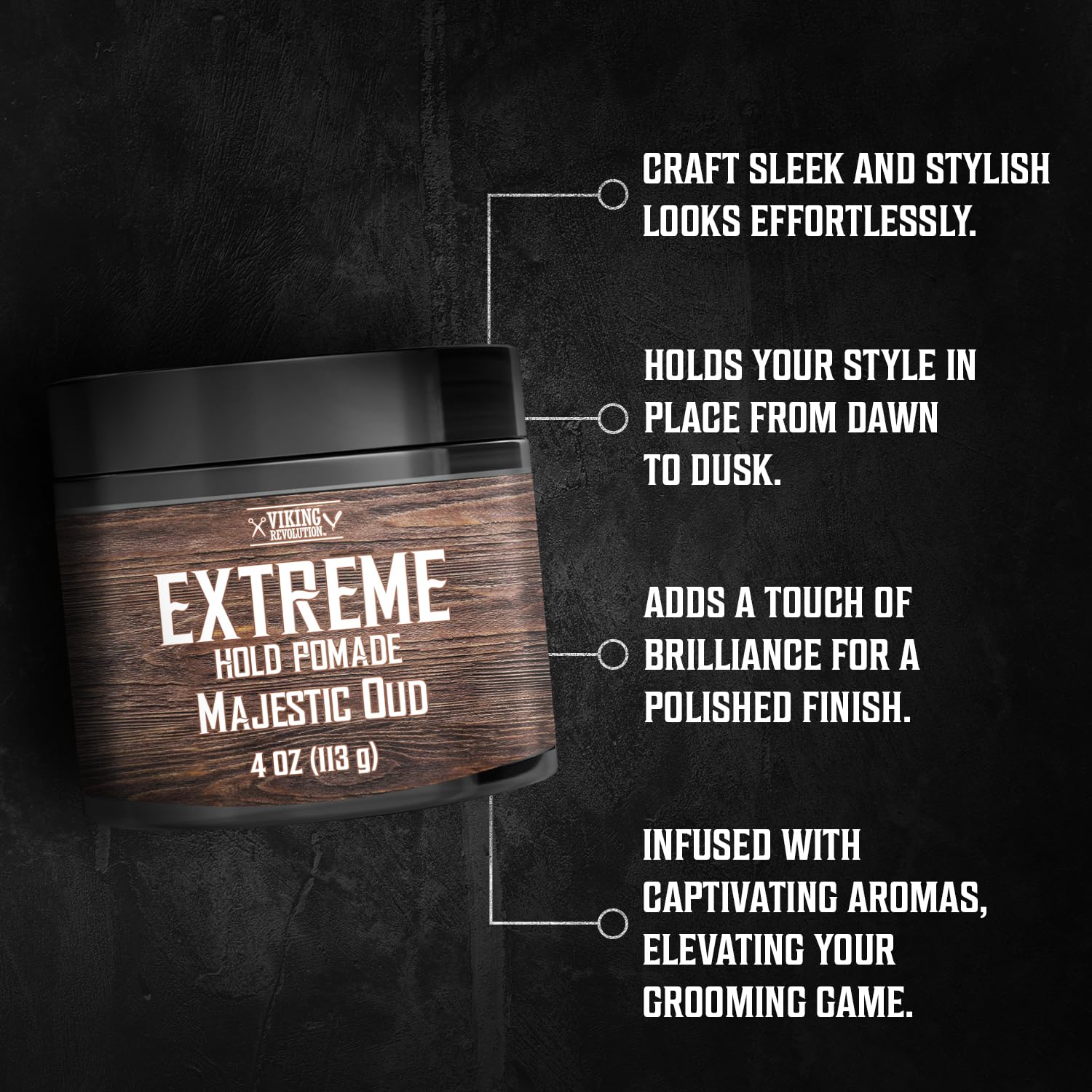 Viking Revolution Majestic Oud Hair Pomade for Men - Extreme Hold Hair Gel for Men Water Based - Mens Pomade Extra Firm Mens Hair Pomade Strong Hold - High Shine Mens Hair Cream (4oz)