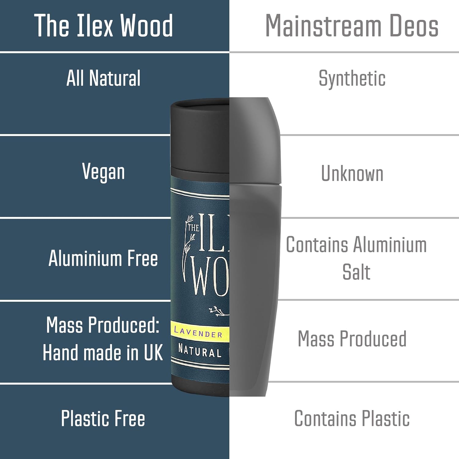 The Ilex Wood - Lavender and Lemon Natural Deodorant - 2.4fl oz. Natural Deo in Recyclable Cardboard Tube, Vegan, no Plastic, no Alcohol, no Toxins, no Aluminium Salts & Cruelty Free for Women & Men