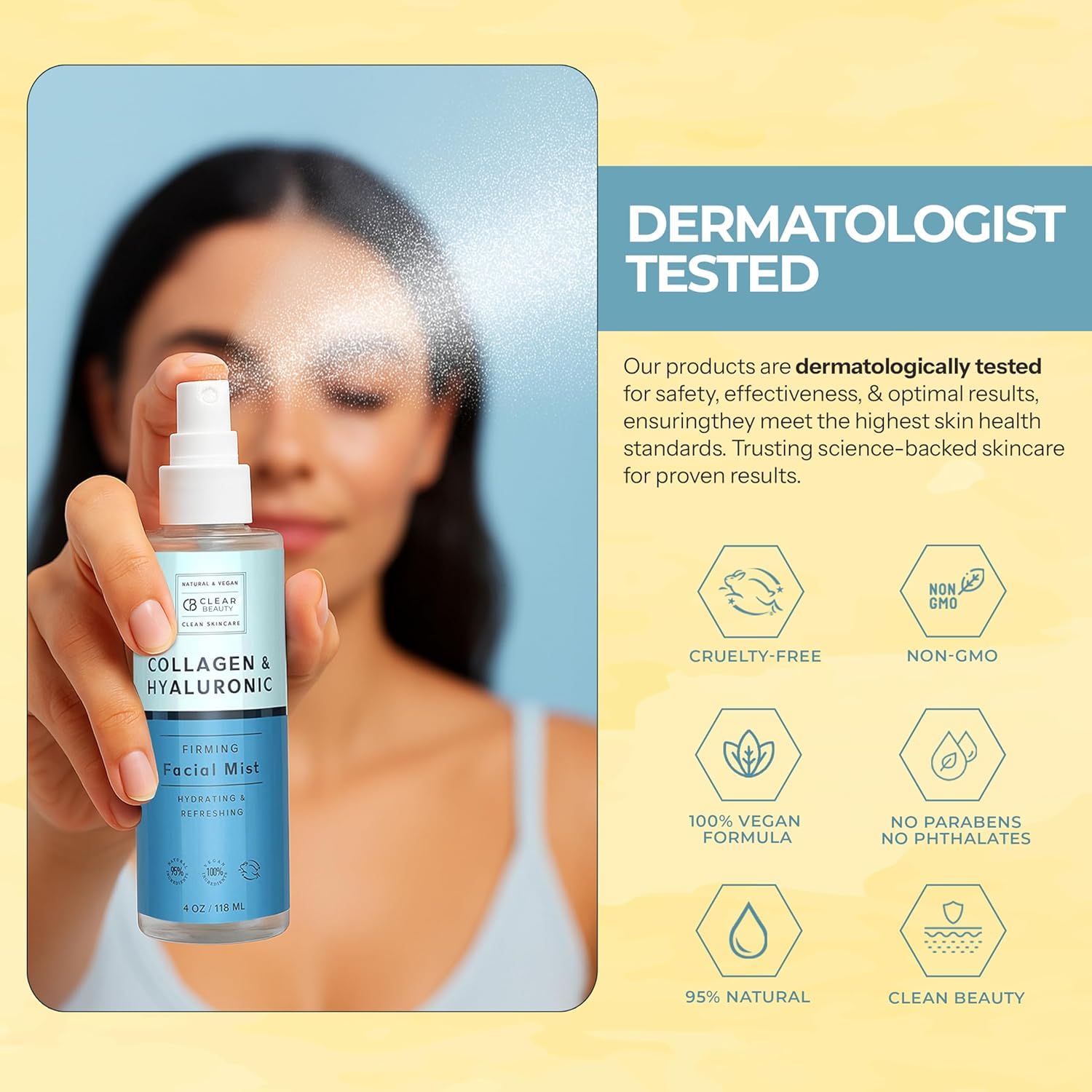 Hyaluronic Acid & Collagen Face Mist - Dermatologist Tested, Moisturizes & Tones Skin, Anti-Aging, Natural Ingredients, Cruelty-Free Korean Skin Care - All Skin Types - 4 OZ (2 Pack)