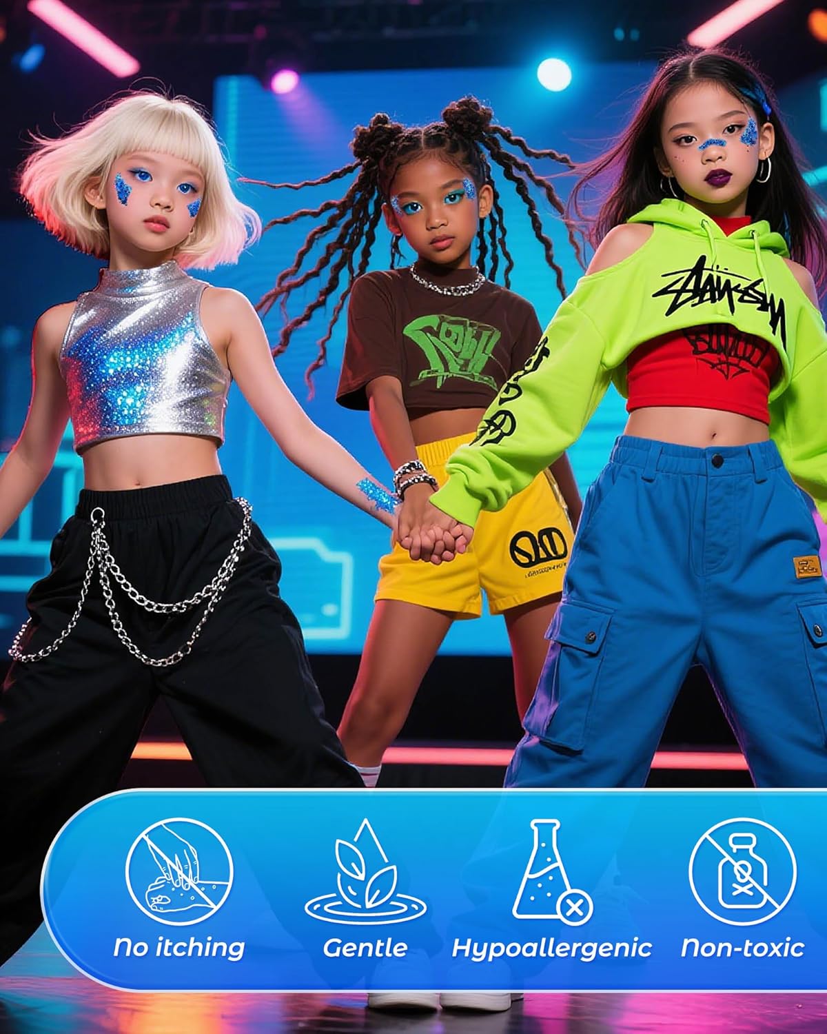 • Long-Lasting & Easy to Remove: Our body glitter stays put throughout the night and washes off easily with soap and water, leaving no stubborn residue