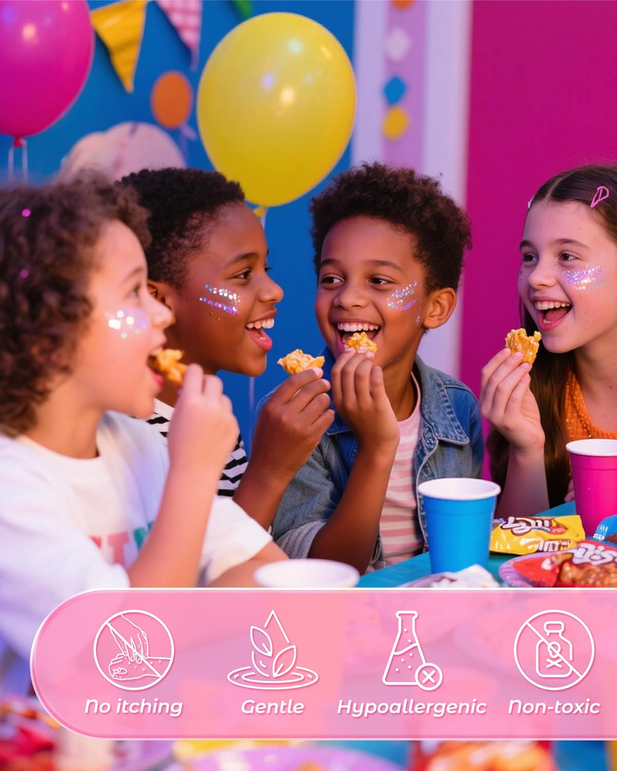 • VEGAN, SAFE & GENTLE: Hypoallergenic, and cruelty-free ingredients, our Clear White Face Glitter Gel is safe for all ages—even kids! It glides on comfortably without irritating skin and washes off easily with soap and water. Party with peace of mind