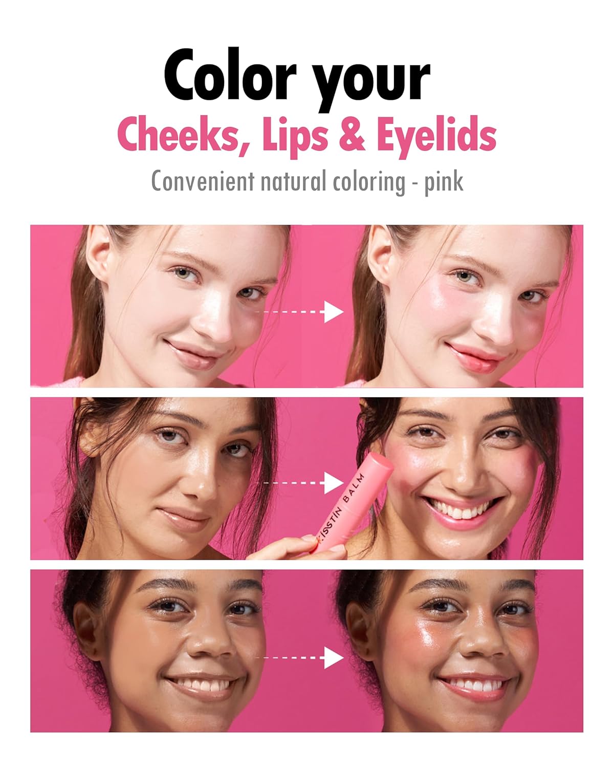 • ✅ TINTED BALM FOR A NATURAL LOOK Doubles as a lip balm, blush, and eyeshadow for a vibrant, dewy finish. Enriched with Salmon Complex, it hydrates and enhances your natural beauty with a hint of color.