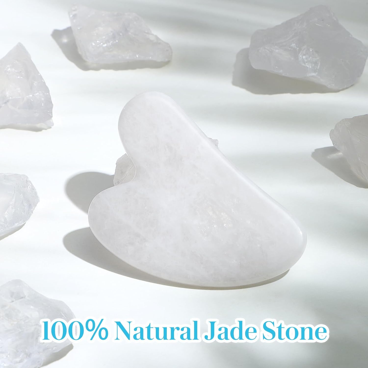 • White Jade Facial Tool: Experience the cooling feeling of jade stone with our facial gua sha tool, designed exclusively for delicate facial contours. This gua sha jade glides smoothly with serums to temporarily reduce morning puffiness and enhance skincare absorption through gentle lymphatic massage