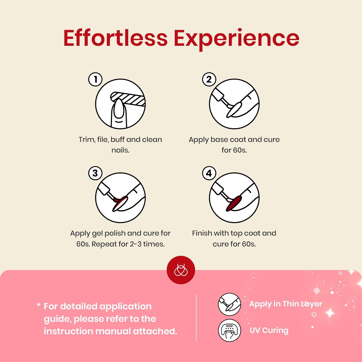 • Speed Curing with Led Nail Lamp: The Pastel peach pink nudes gel nail polish nail art kit need to be cured under Led/Uv light.