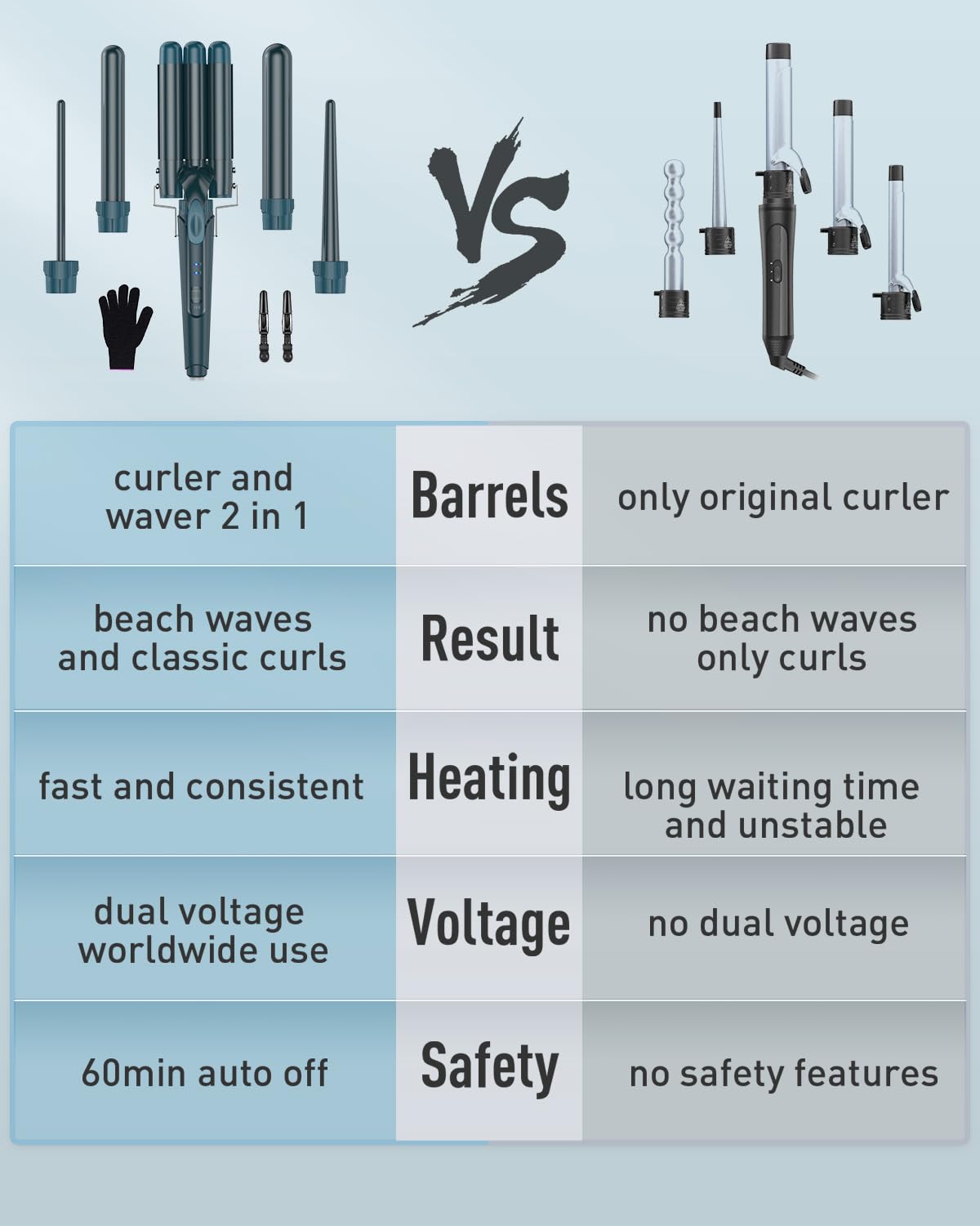 • Get 5 Types Of Gorgeous Curls: Customize your curls with hair waver 3 barrel and 4 curling wand to switch up your different hairstyles everyday, easy to use for beginners.