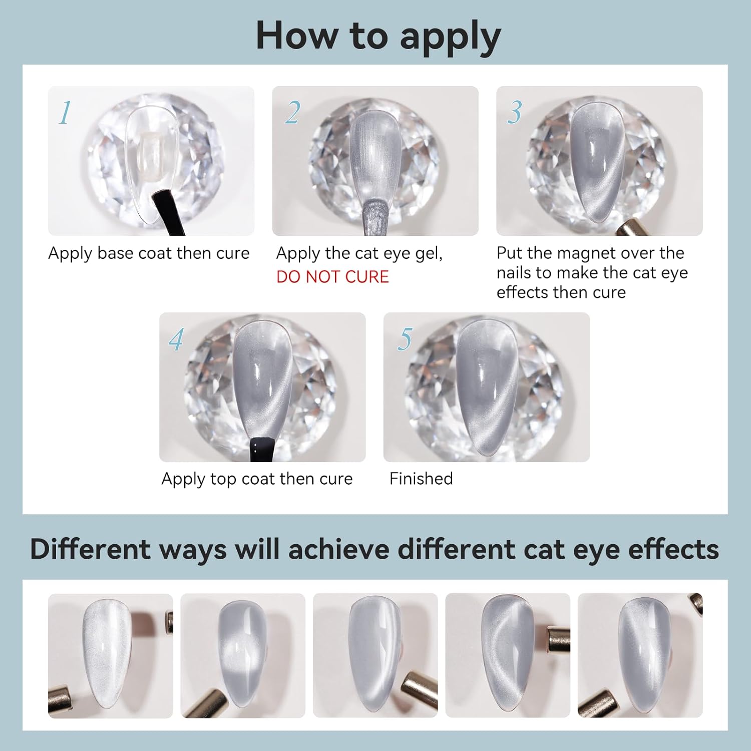 • 28 Days No Peel-off and Bubble-free: The moonlight cat eye gel nail polish is high gloss and smooth and has a mirror glass shine finish, it has more strong coverage, and would last for 28+ days under proper apply way