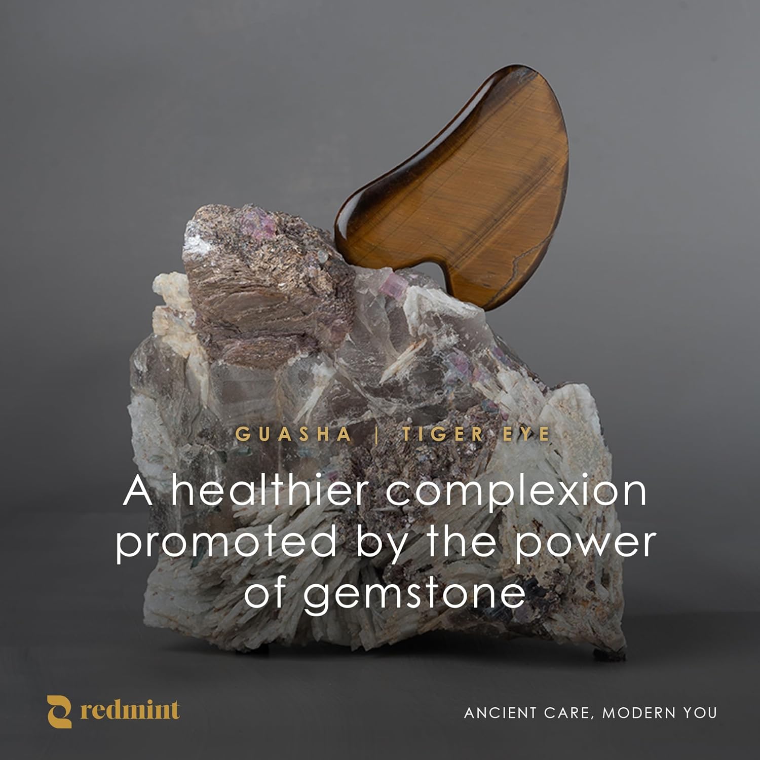 • TIGER EYE GEMSTONE. Experience the power of Tiger Eye Gemstone, which enhances the effectiveness of your Gua Sha ritual, giving you a more defined and rejuvenated look