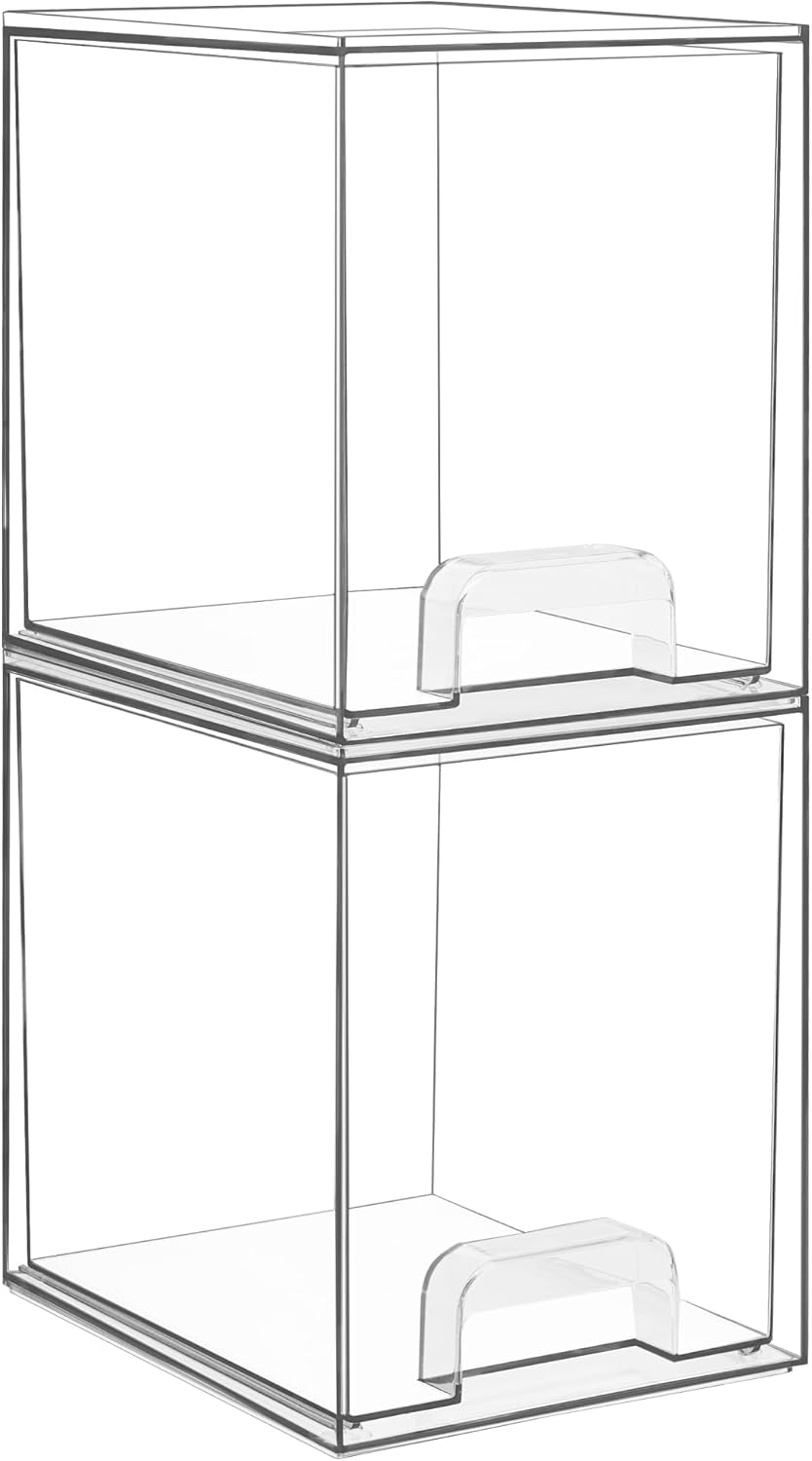 • [Stackable Design] Come with 2 drawer storage organizers, each organizer measures 7.5"D x 6"W x 7.6"H. Vertical storage will save a lot of space. You can put other objects on top of acrylic bins to make your countertop and cabinet space more tidy. It can also be stacked with Vtopmart storage drawers of other sizes.