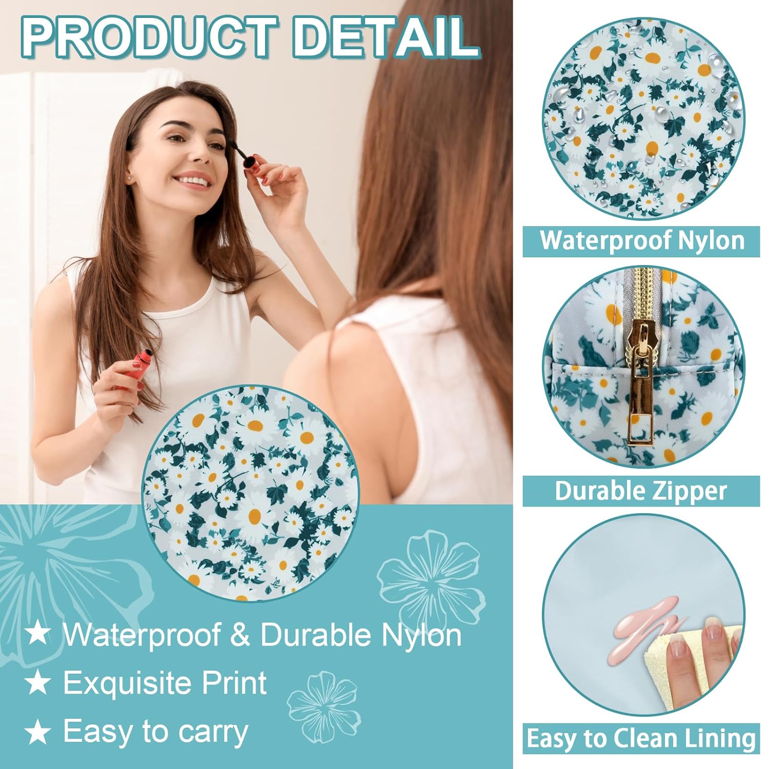• 【Superior Quality】The floral makeup bag is made of lightweight and durable high quality nylon. It is waterproof and easy to clean, helping to protect your cosmetics and toiletries from water spill accidents. Age grading: 156months+;Age group applied in testing: Over 3 years.