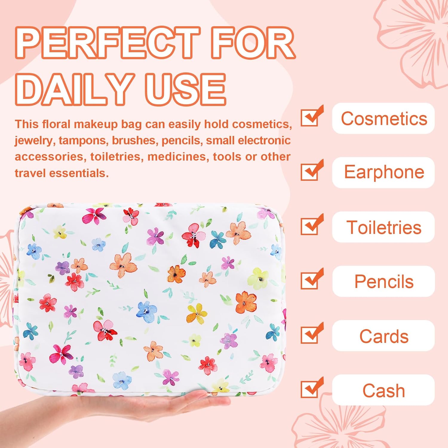 • 【Superior Quality】The floral makeup bag is made of lightweight and durable high quality nylon. It is waterproof and easy to clean, helping to protect your cosmetics and toiletries from water spill accidents.
