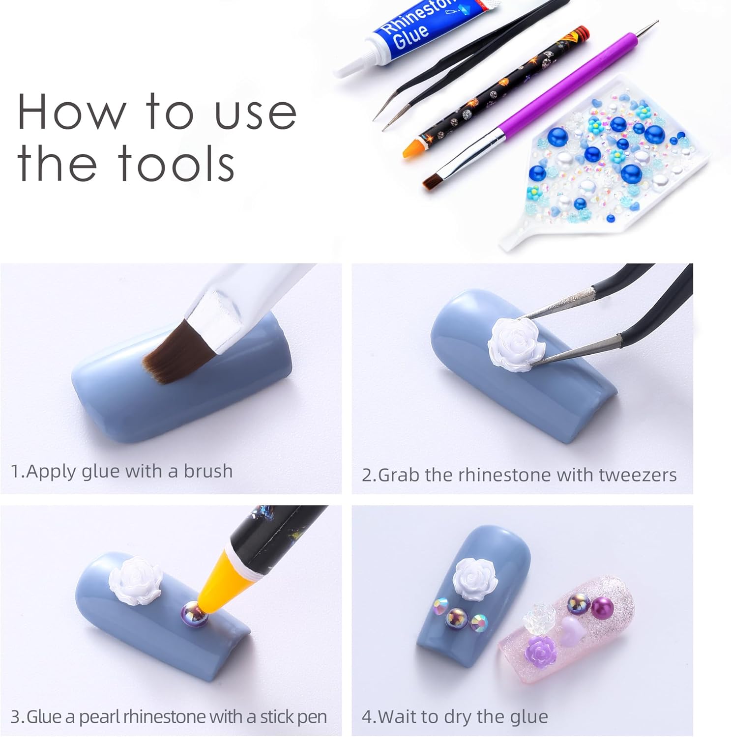 • Useful tools - These pearls and rhinestones have a flat back, which is excellent for easy placement.and you can pick up any large or small pearls and rhinestones with the crayons we bring along. And use the brush to smooth out the Gel, these tools will work very well