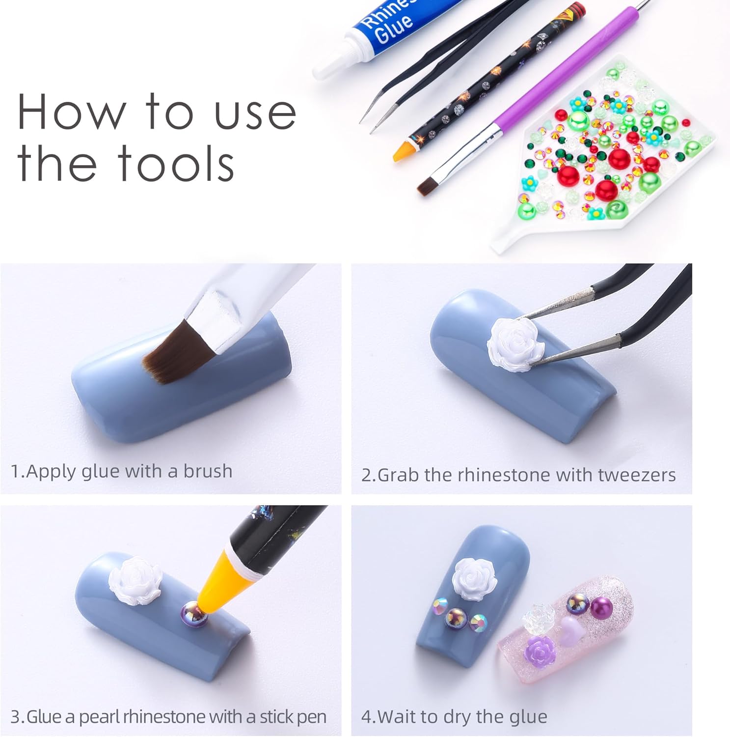 • Useful tools - These pearls and rhinestones have a flat back, which is excellent for easy placement.and you can pick up any large or small pearls and rhinestones with the crayons we bring along. And use the brush to smooth out the Gel, these tools will work very well