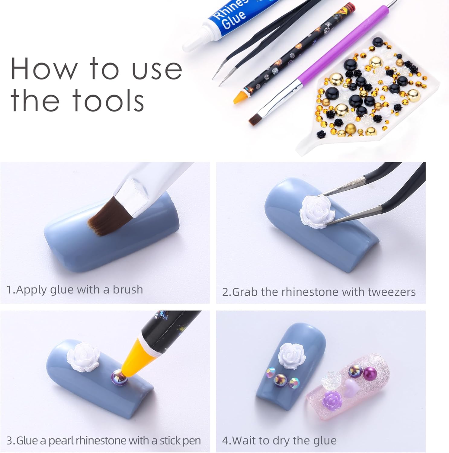 • Useful tools - These pearls and rhinestones have a flat back, which is excellent for easy placement.and you can pick up any large or small pearls and rhinestones with the crayons we bring along. And use the brush to smooth out the Gel, these tools will work very well