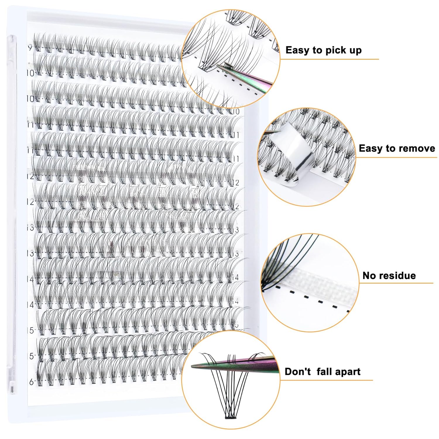 • DIY Individual Clusters at Home: 280 clusters in one tray. You can apply cluster lashes at home by yourself. Easy to put lashes on, gorgeous results, and lash clusters are not easily fall apart. Cluters take less time to complete each eye. Now save so much money and time.